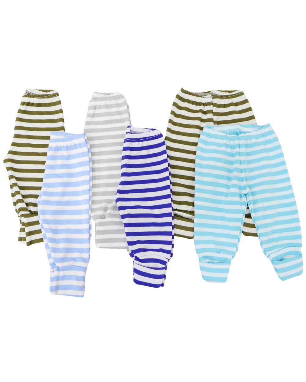 Mijão em suedine listrado Luana Baby pacote com 6 peças sortidas, modelo vira pé com cintura elástica para maior conforto do bebê.