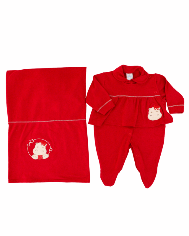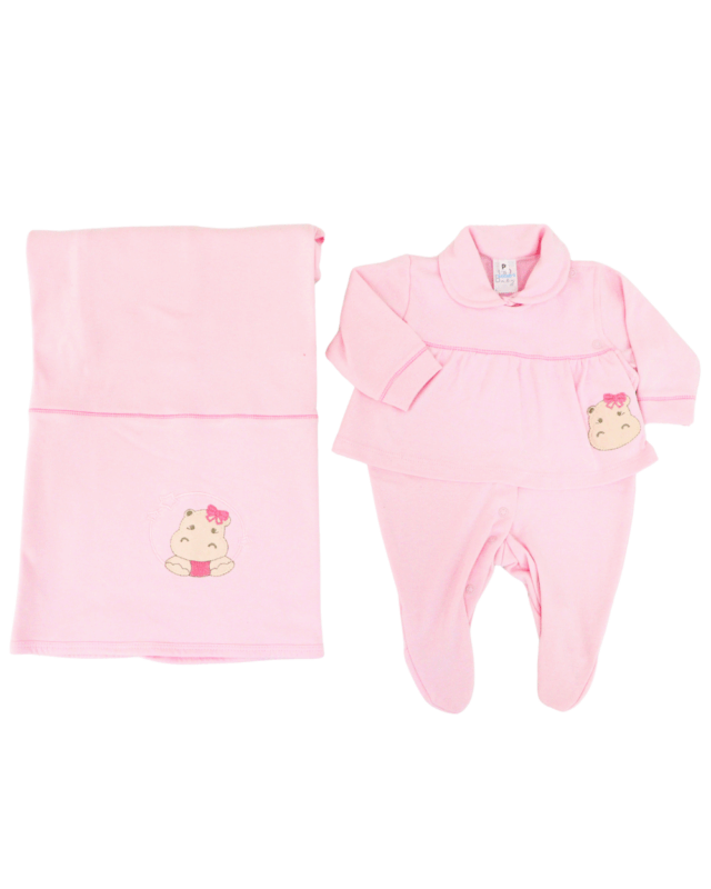 Saída de maternidade Bloomys, macacão manga longa modelo bordado. Acompanha manta.