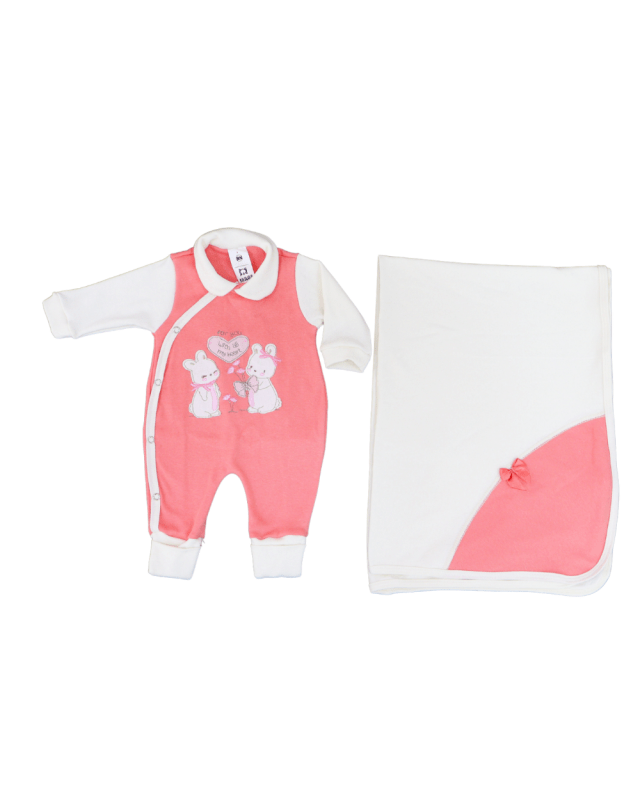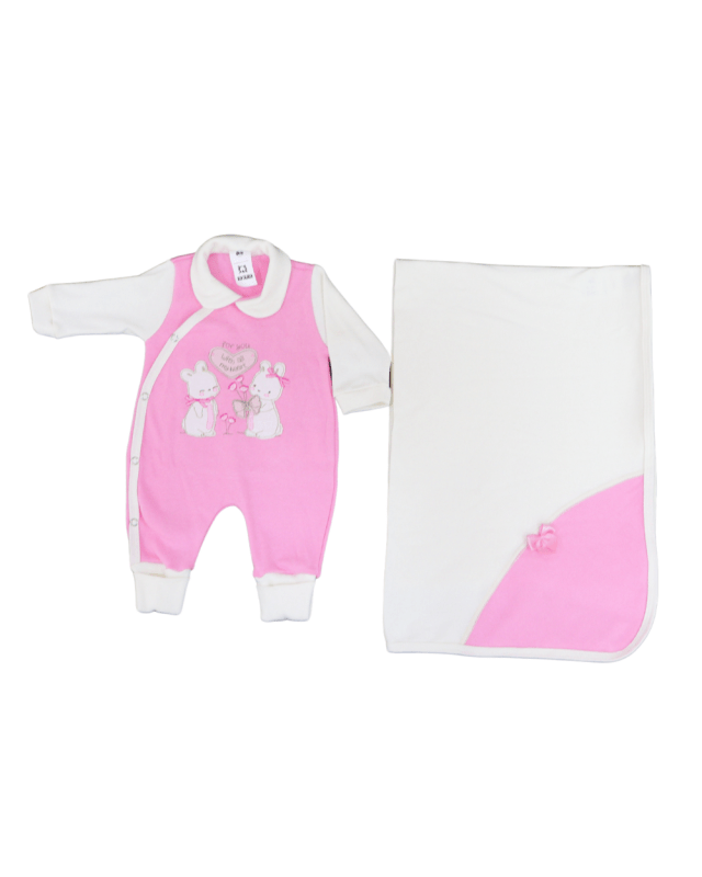 Saída de maternidade suedine menina, macacão manga longa peito bordado. Acompanha manta.