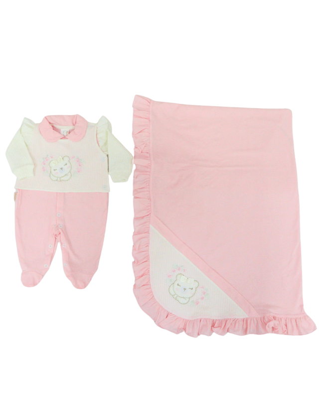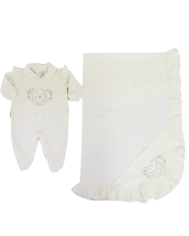 Saída Maternidade Chuquinha Menino, macacão manga longa e acompanha manta.