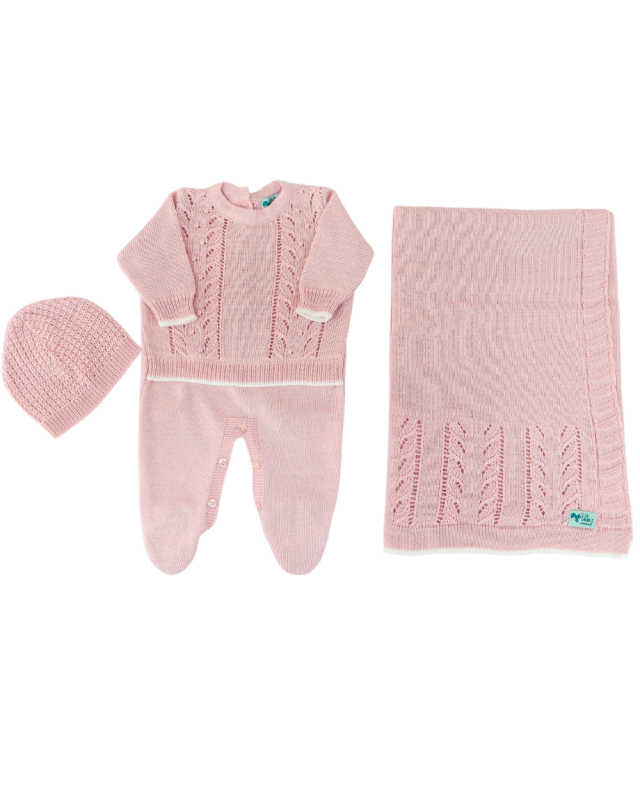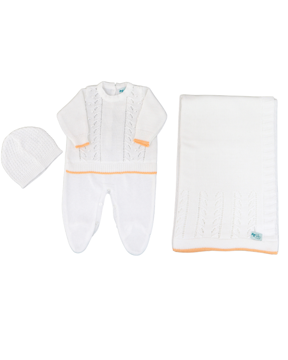Saída de maternidade Club Colors, menino, contém 1 touca, 1Macacão e 1 Manta.
