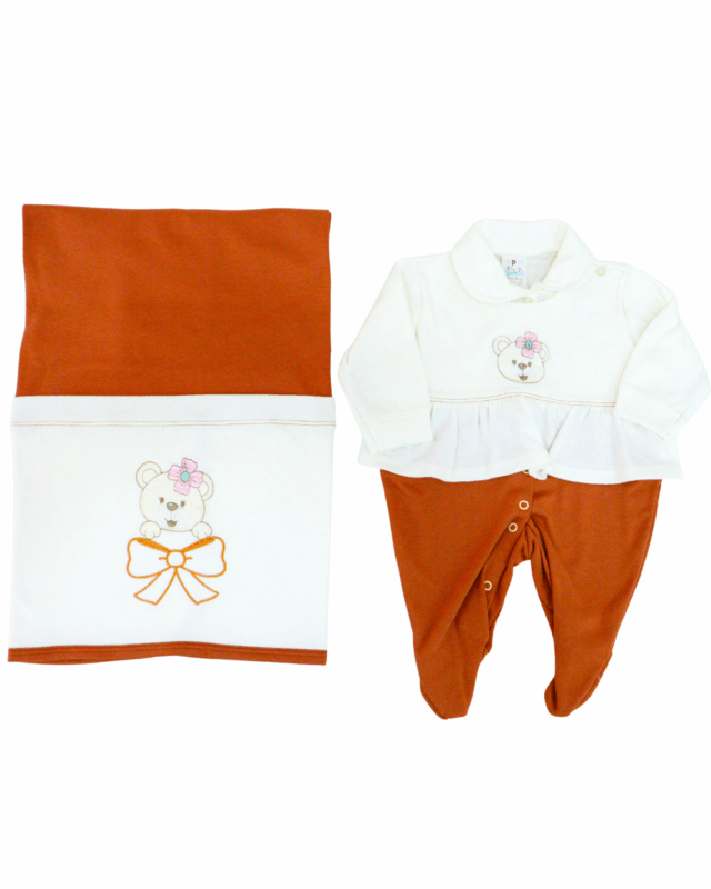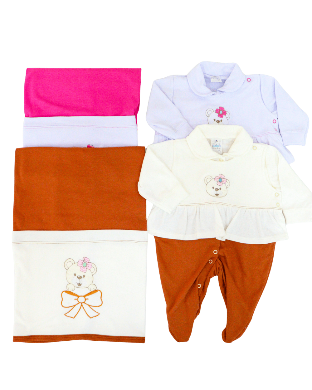 Saída de maternidade Bloomys, macacão manga longa modelo bordado. Acompanha manta.