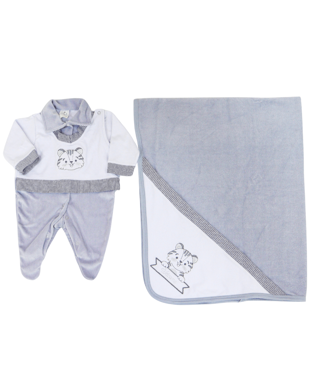 Saída de maternidade Bloomys, menina, macacão manga longa peito bordado. Acompanha manta.