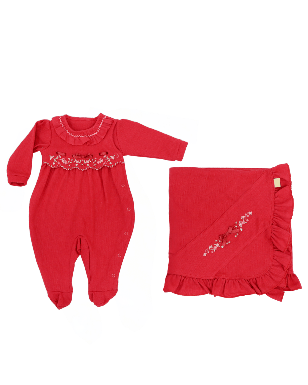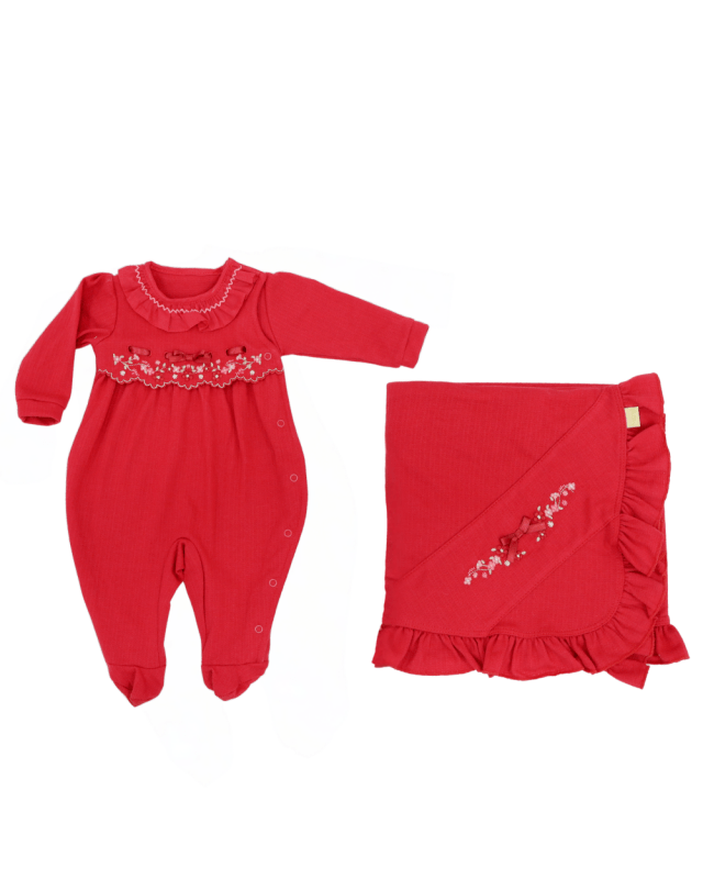 Saída de maternidade Paraíso, menina, macacão manga longa peito bordado. Acompanha manta.