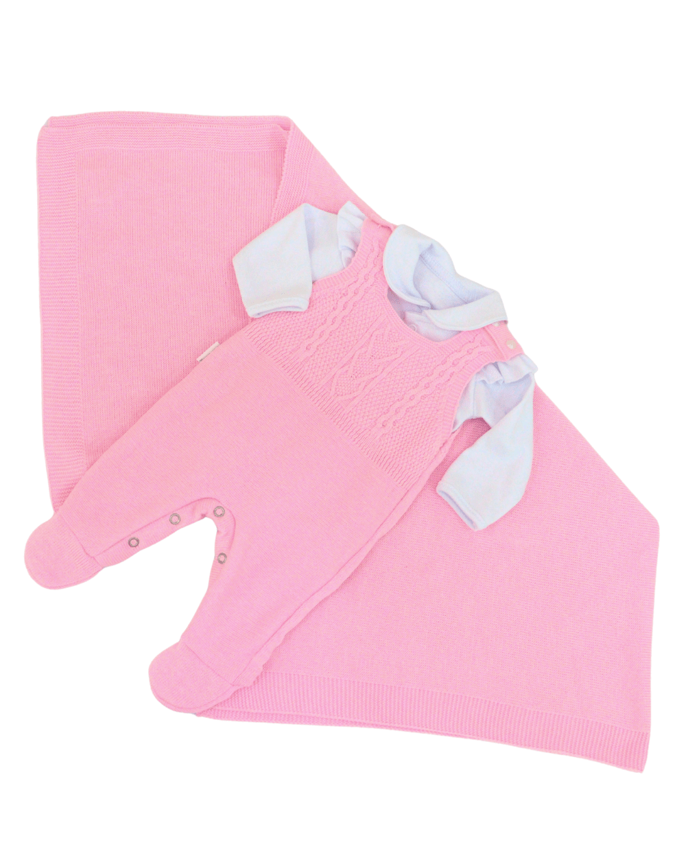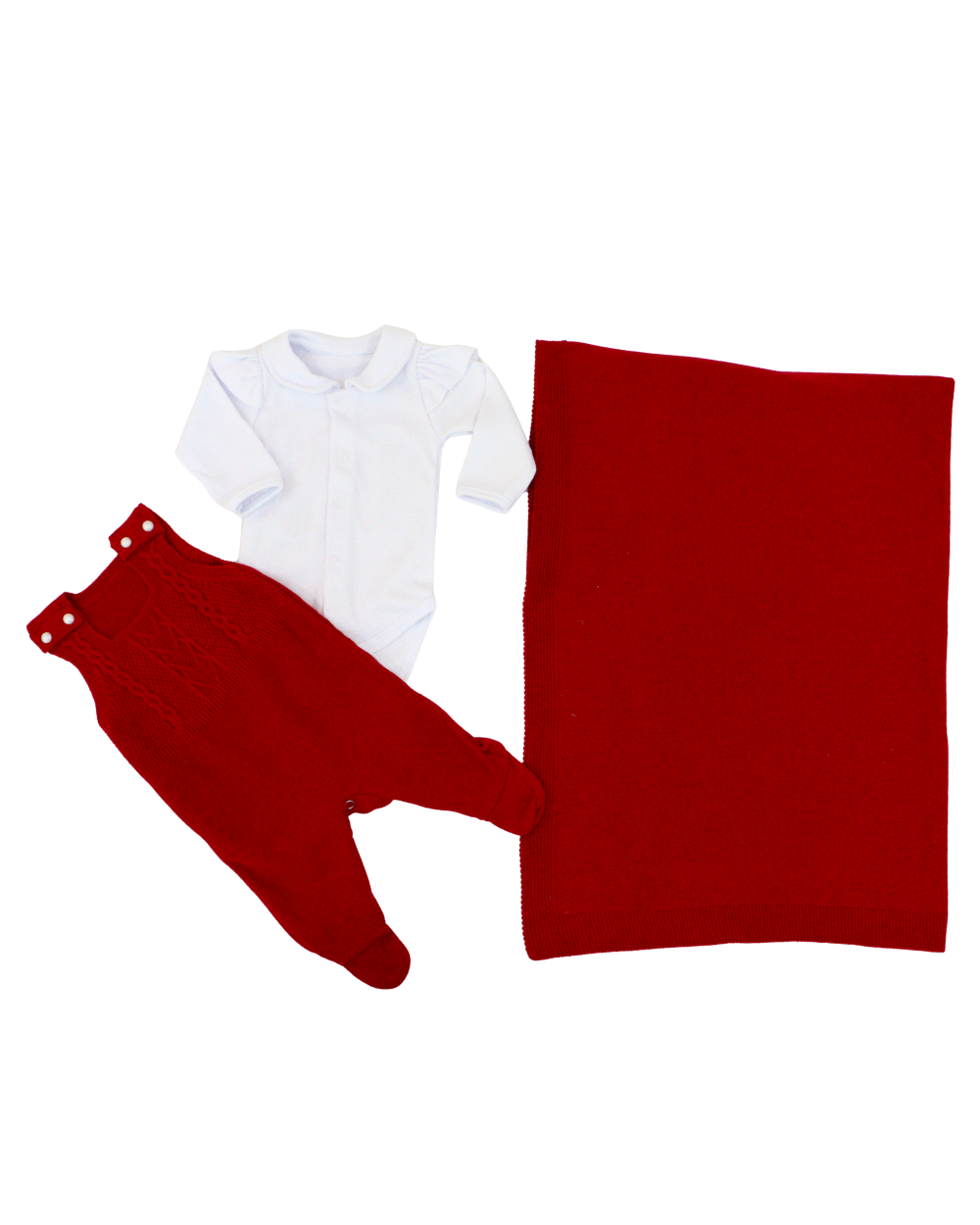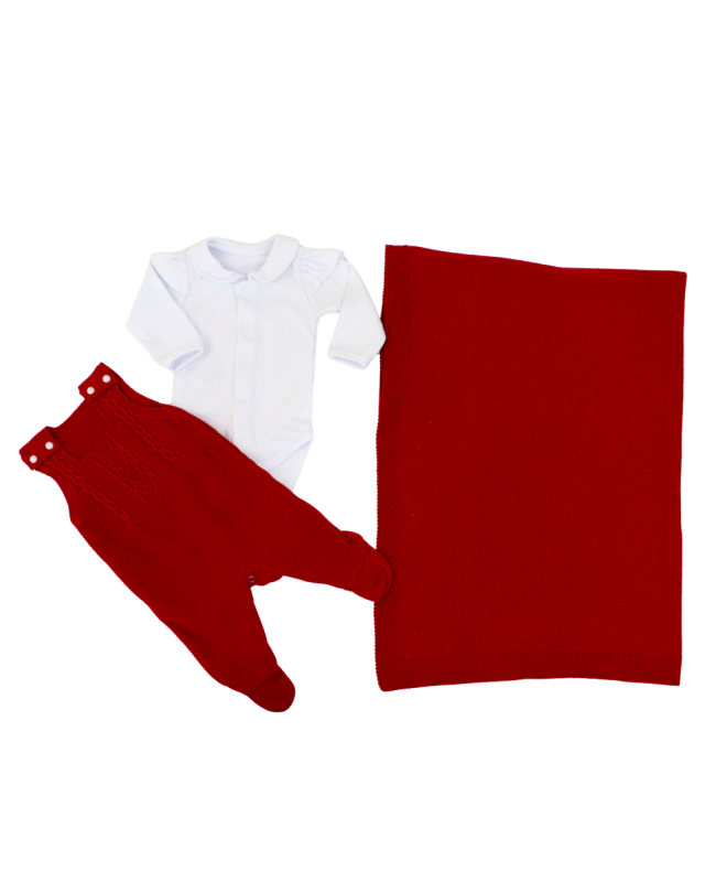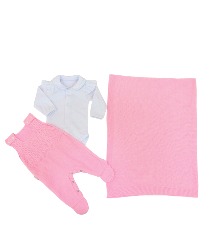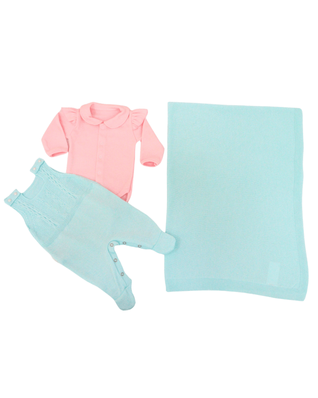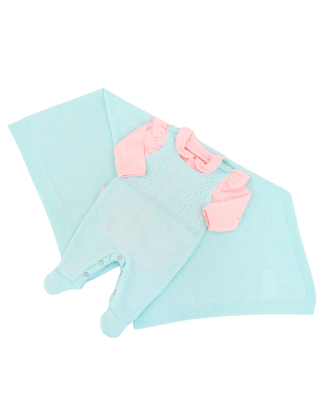 Saída de Maternidade Fofinho Menino, body manga longa, jardineira e acompanha manta.