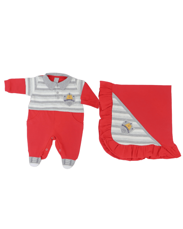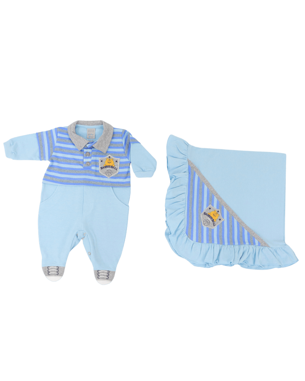 Saída de maternidade suedine menino, macacão manga longa peito bordado. Acompanha manta.
