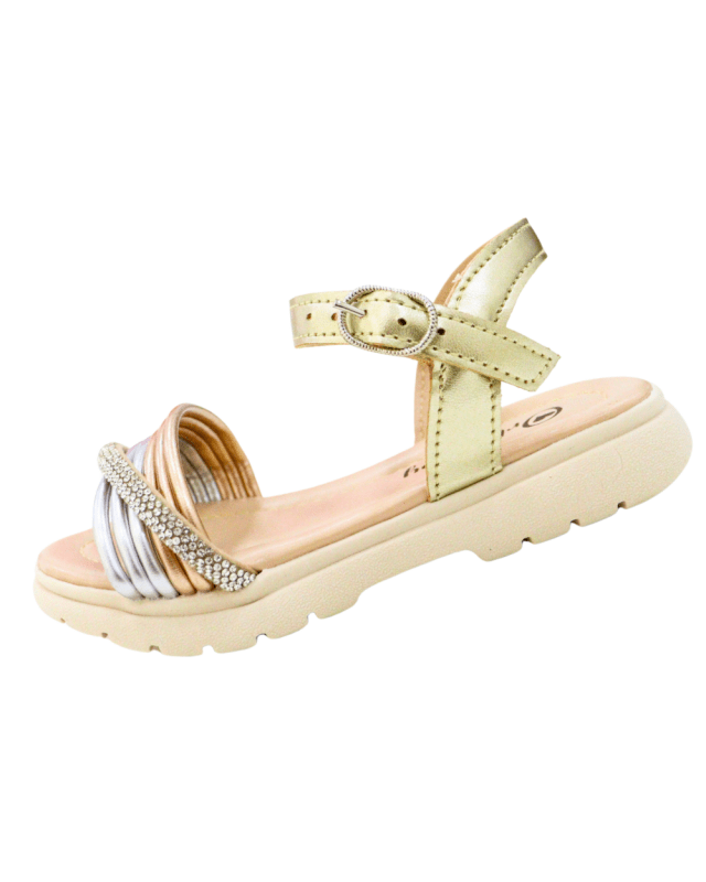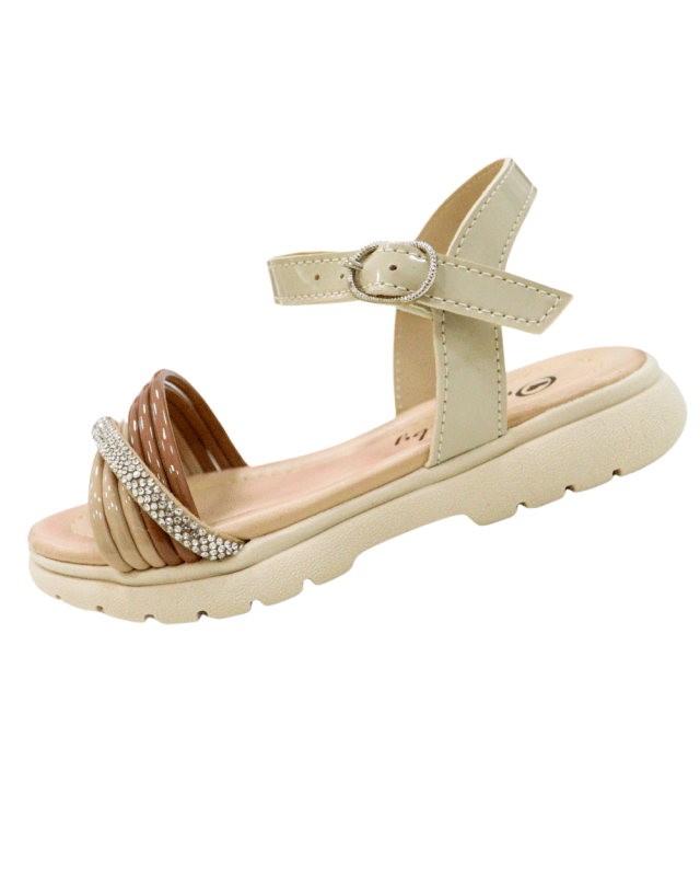 Sandália feminina infantil feita em material sintético. Palmilha macia e confortável. O solado infantil é emborrachado e antiderrapante. Calce fácil e prático. Fecho em fivela