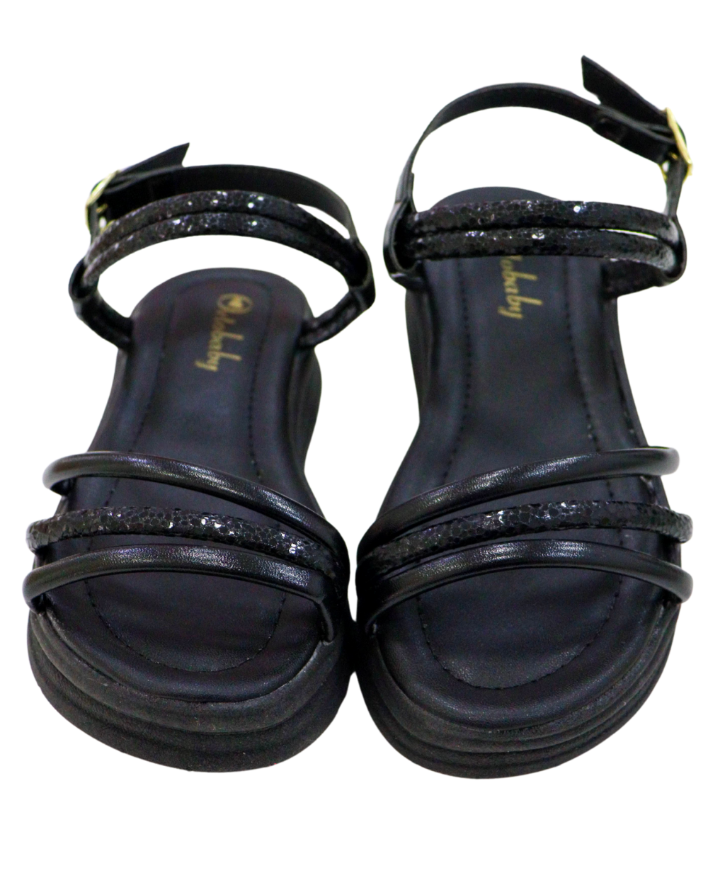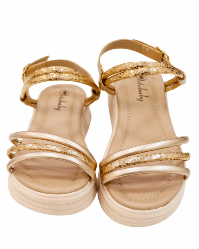 Sandália feminina infantil feita em material sintético. Palmilha macia e confortável. O solado infantil é emborrachado e antiderrapante. Fecho em fivela.