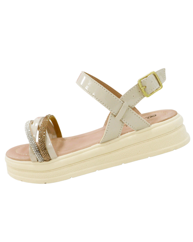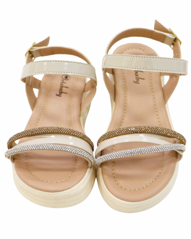 Sandália feminina infantil feita em material sintético. Palmilha macia e confortável. O solado infantil é emborrachado e antiderrapante. Fecho em fivela.