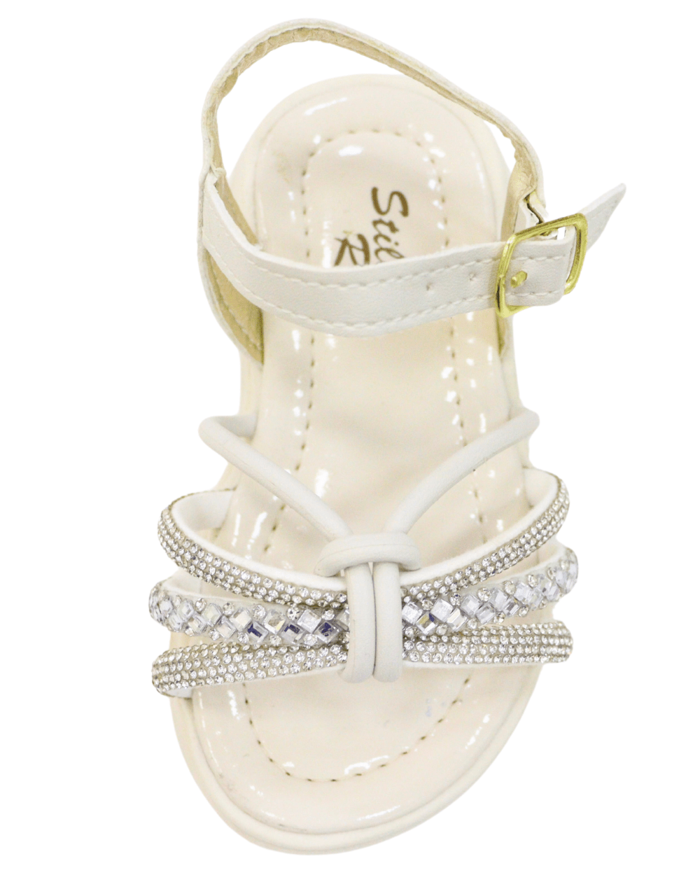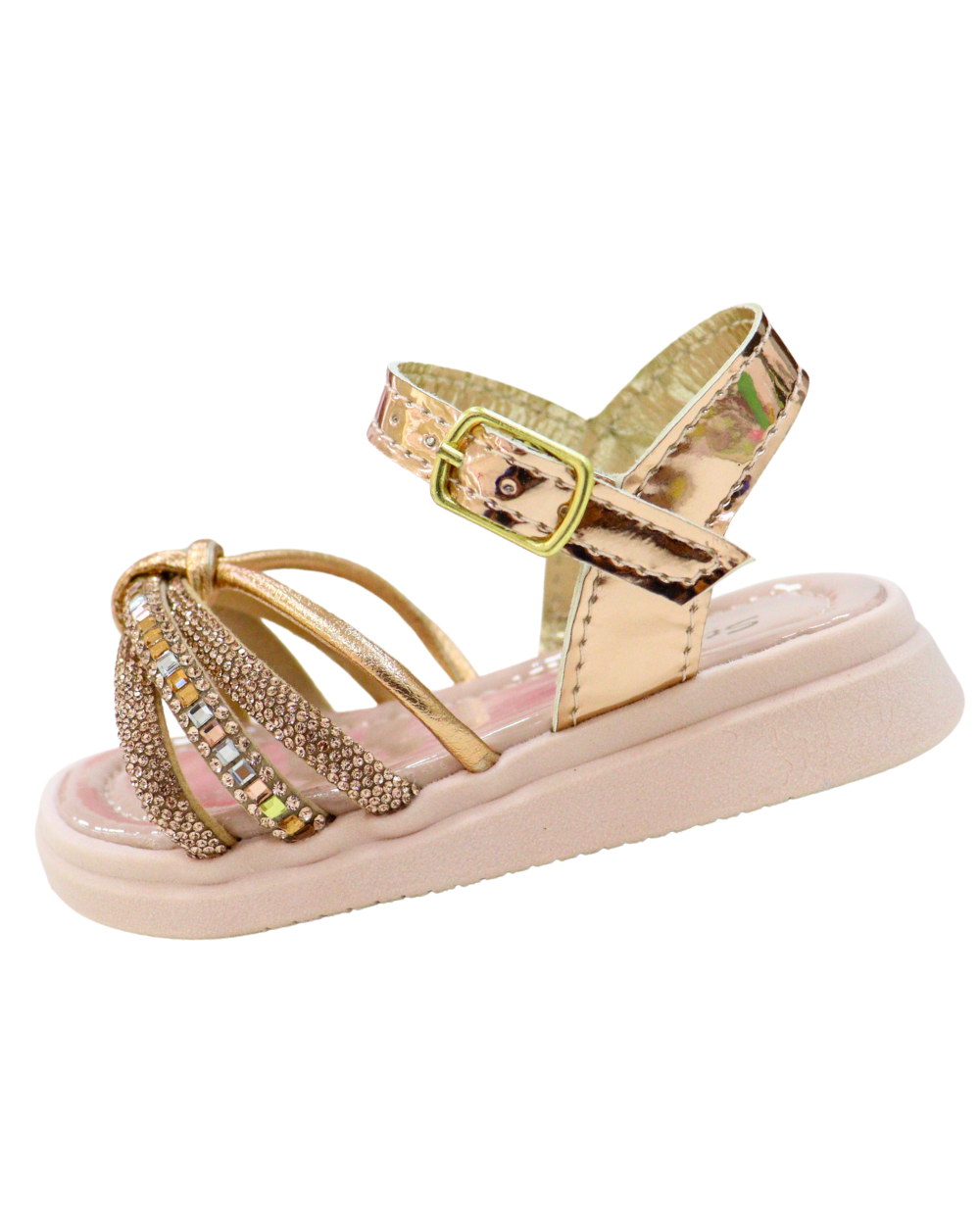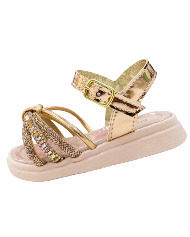 Sandália feminina infantil feita em material sintético. Palmilha macia e confortável. O solado infantil é emborrachado e antiderrapante. Fecho em fivela.