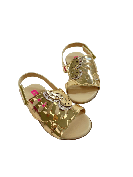 Sandália infantil feminina, feita em material sintético, com aplicação de borboleta com glitter. Palmilha macia e confortável. O solado da sandália é emborrachado e antiderrapante. Calce fácil e prático através de velcro.