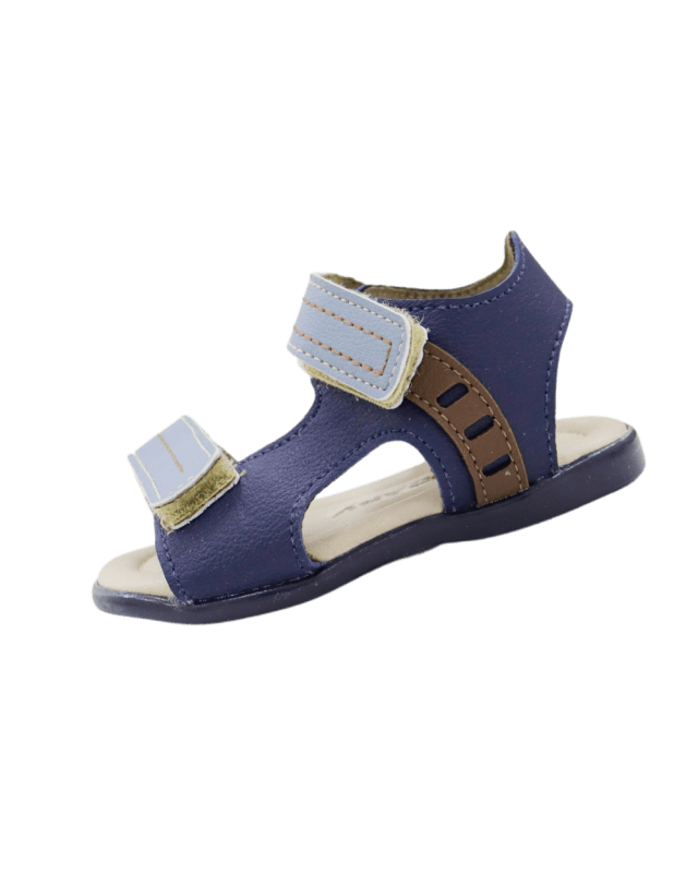 Sandália Masculina infantil feita em material sintético. Palmilha macia e confortável. O solado infantil é emborrachado e antiderrapante. Fecho em Velcro