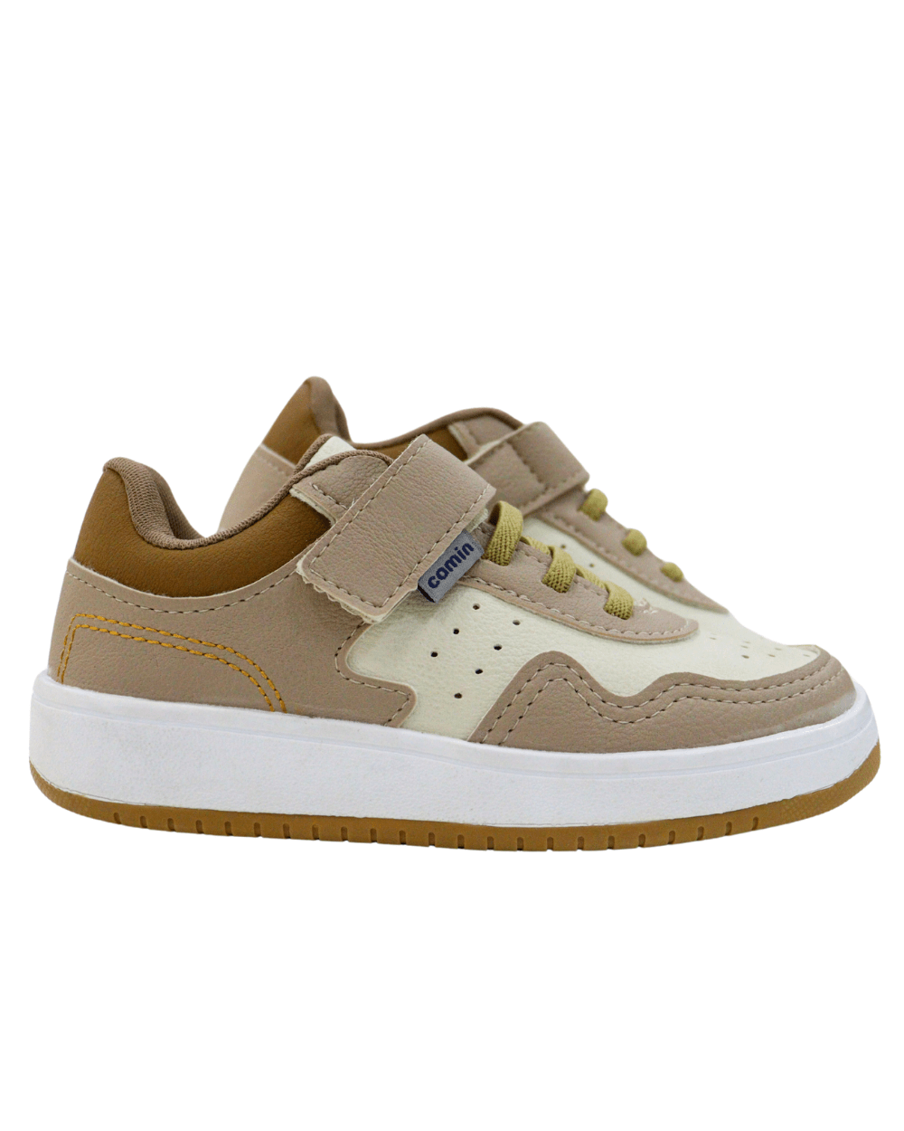 Conforto e estilo para os pequenos! Design moderno na cor marfim, ideal para todas as ocasiões. Calçado resistente e perfeito para acompanhar as aventuras dos meninos.