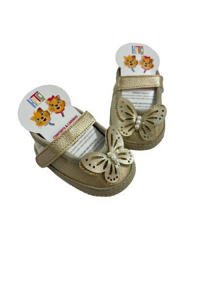 Sapatilha feminina infantil, confeccionado em material leve e com forro de tecido. Garantido todo e conforto e segurança para o seu bebê. Fecho lateral em velcro, com borboleta frontal.