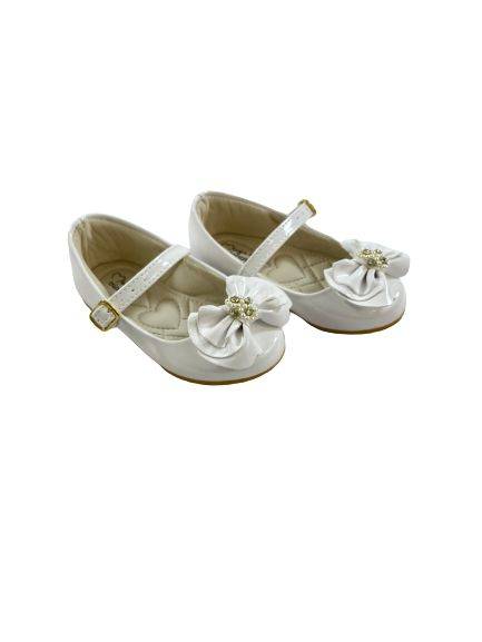 Sapatilha feminina infantil, confeccionado em material leve e com forro de tecido. Garantido todo e conforto e segurança para criança. Fecho lateral em fivela. Laço frontal.