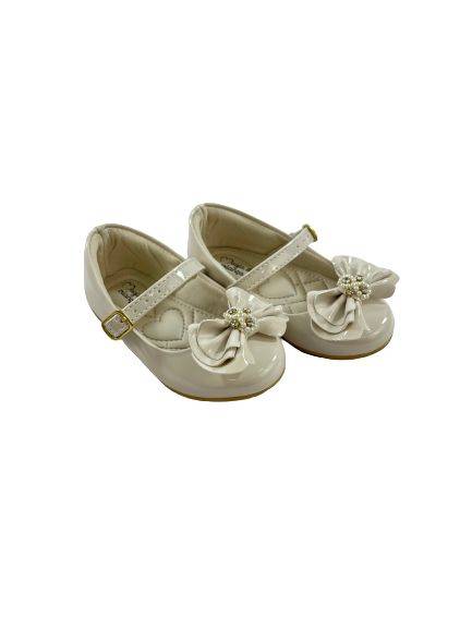 Sapatilha feminina infantil, confeccionado em material leve e com forro de tecido. Garantido todo e conforto e segurança para criança. Fecho lateral em fivela. Laço frontal.