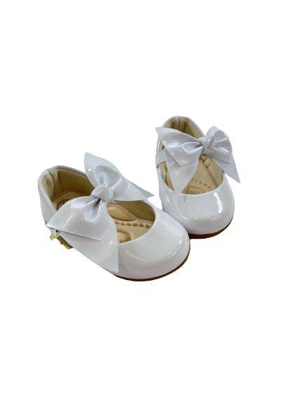 Sapatilha feminina infantil, confeccionado em material leve e com forro de tecido. Garantido todo e conforto e segurança para criança. Fecho lateral em fivela. Laço frontal com a opção de retirada.