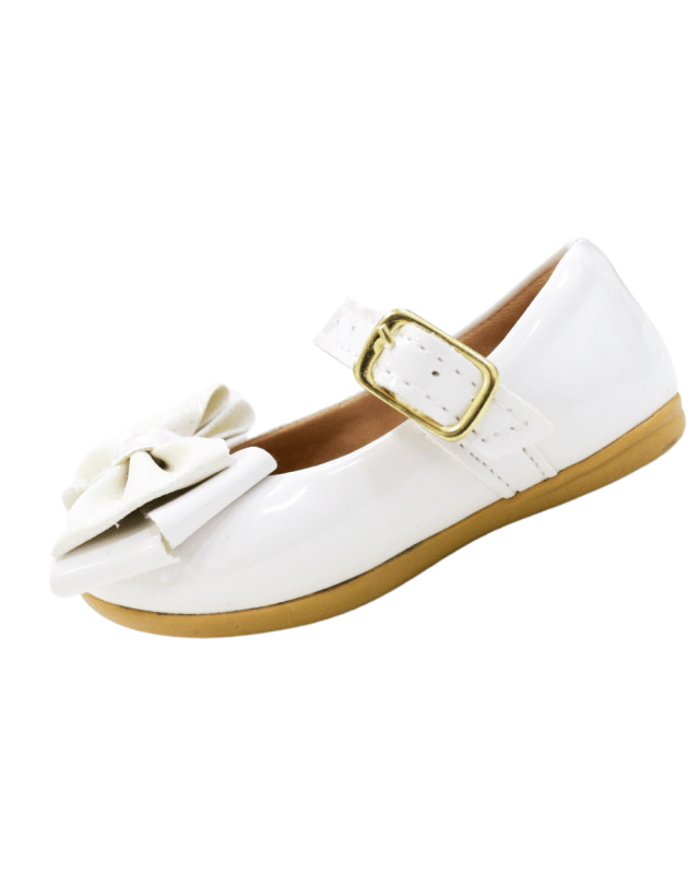 Sapatilha Verniz feminina infantil, confeccionado em material leve e com forro de tecido. Garantido todo e conforto e segurança para criança. Fecho lateral em fivela. flores laterais com miolo em pérola e strass.