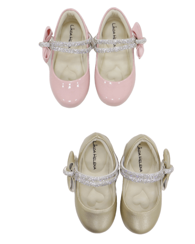 Sapatilha feminina infantil, confeccionado em material leve e com forro de tecido. Garantido todo e conforto e segurança para criança. Fecho lateral em velcro. Com detalhes em strass.
