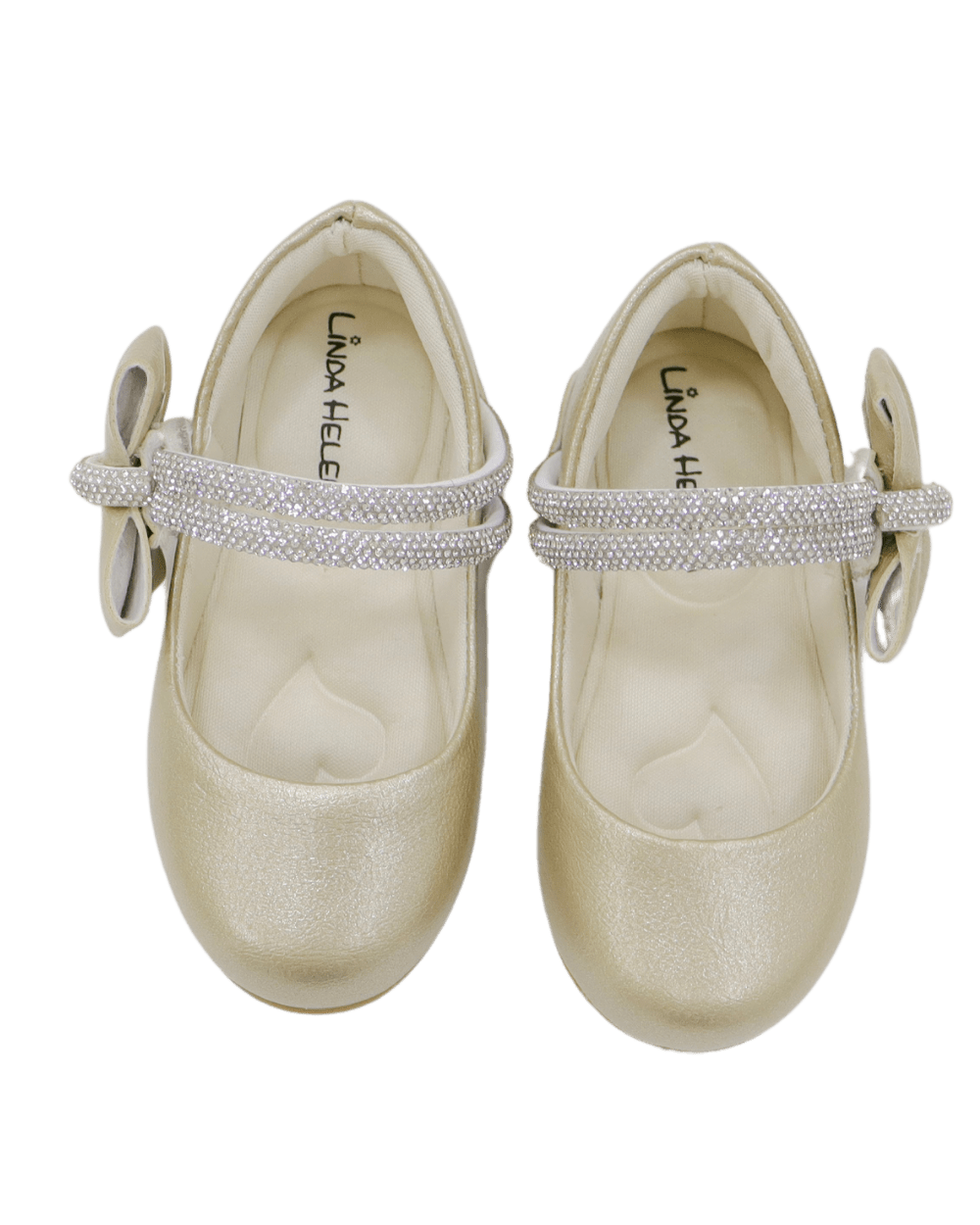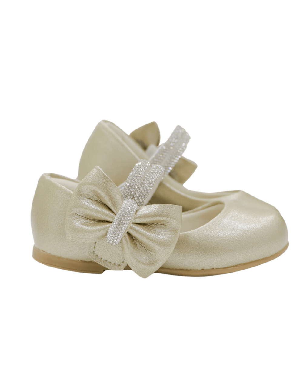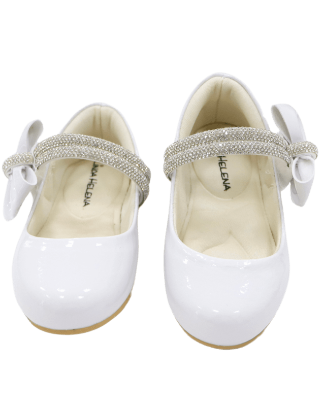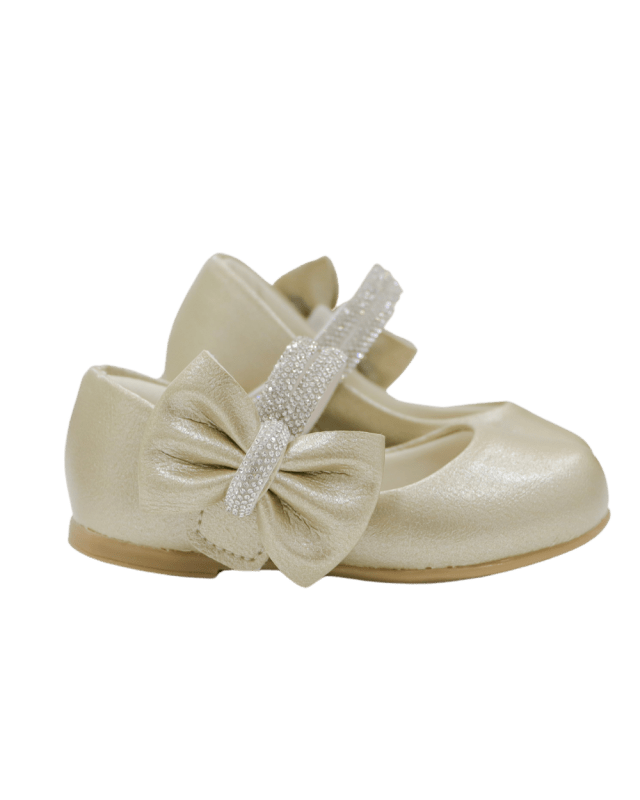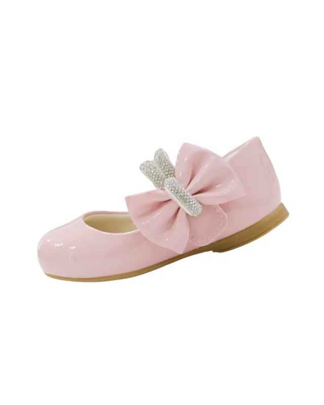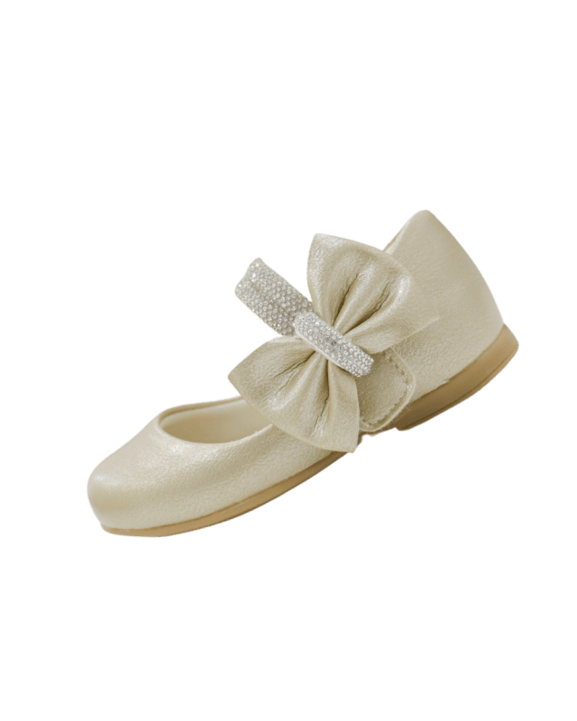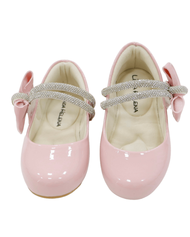 Sapatilha feminina infantil, confeccionado em material leve e com forro de tecido. Garantido todo e conforto e segurança para criança. Fecho lateral em velcro. Com detalhes em strass.