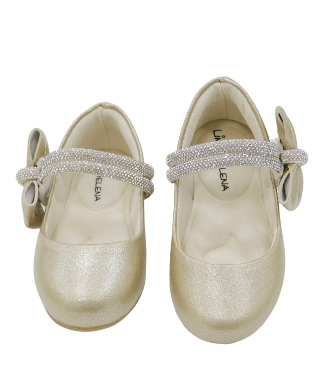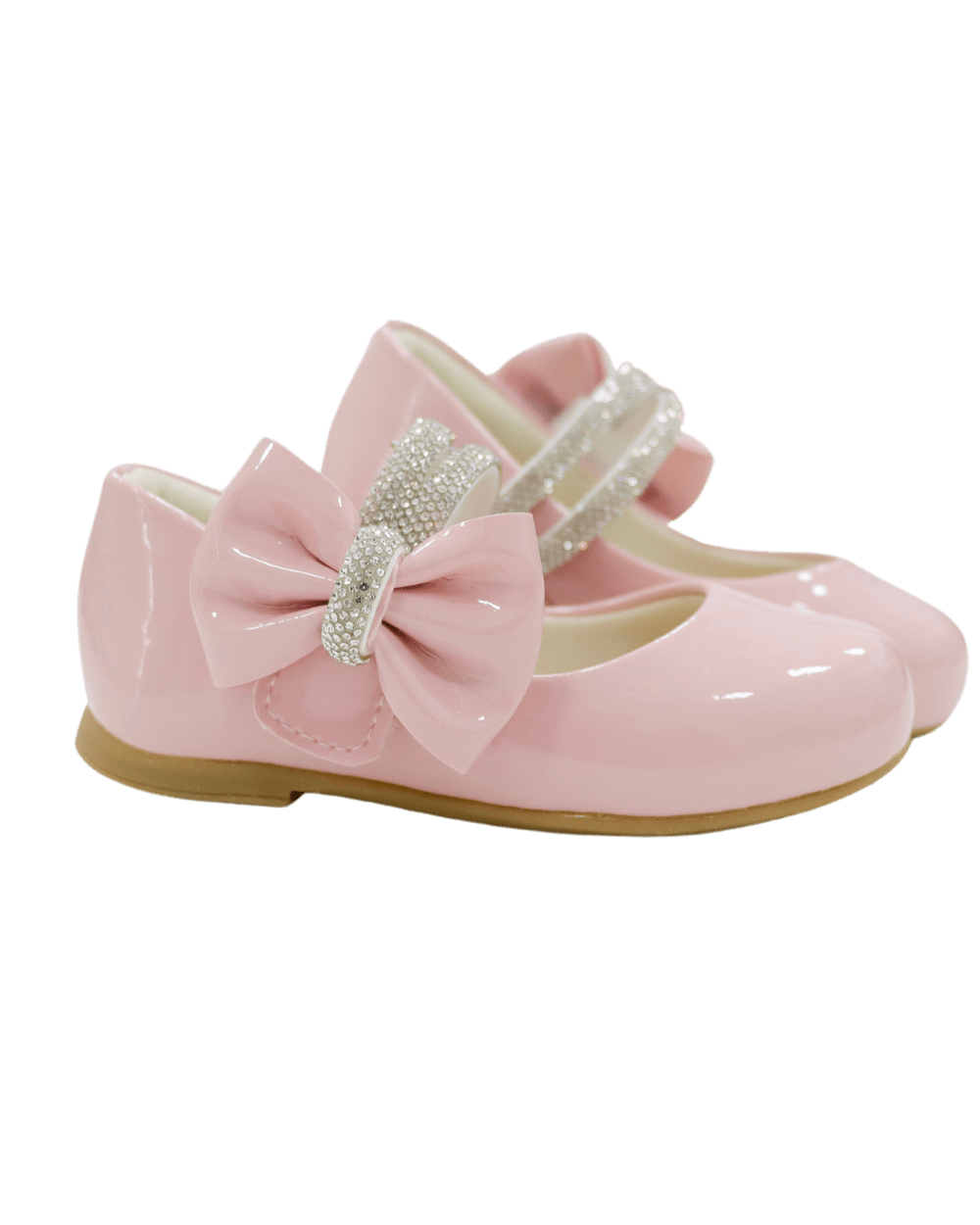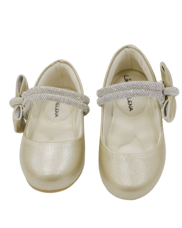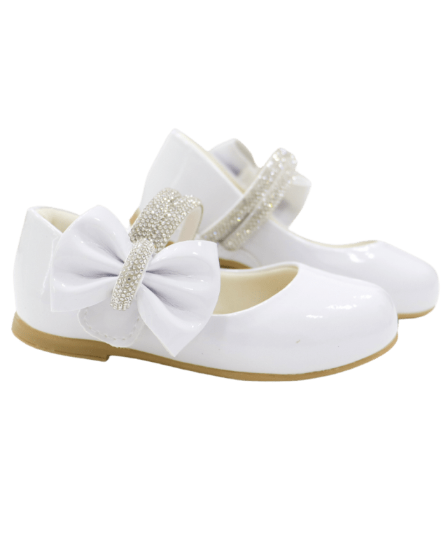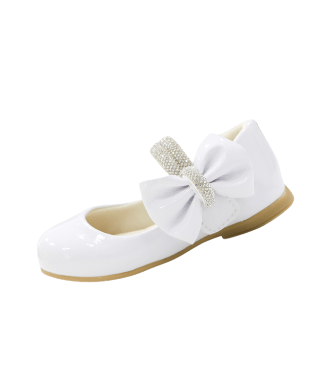 Sapatilha feminina infantil, confeccionado em material leve e com forro de tecido. Garantido todo e conforto e segurança para criança. Fecho lateral em velcro. Com detalhes em strass.
