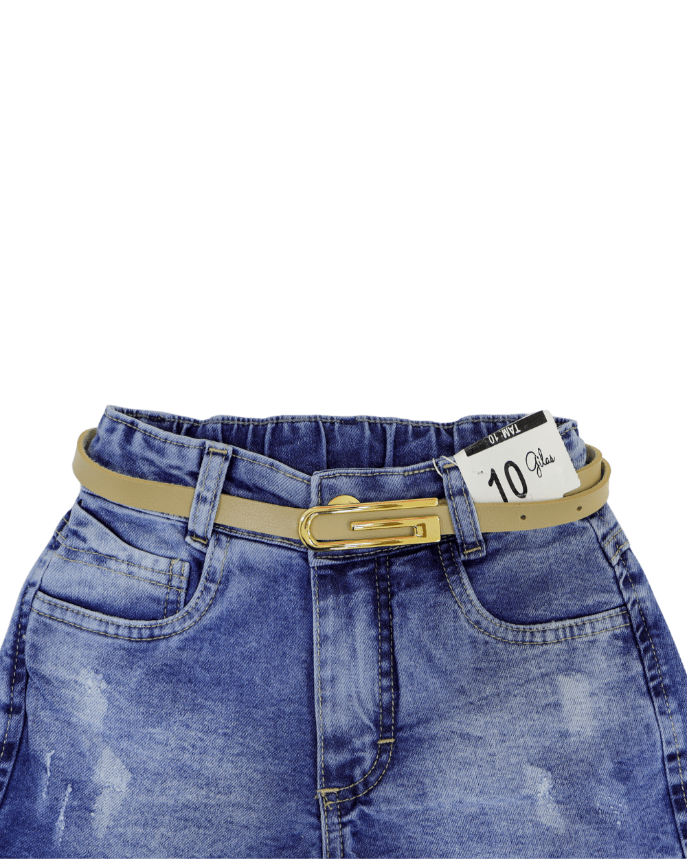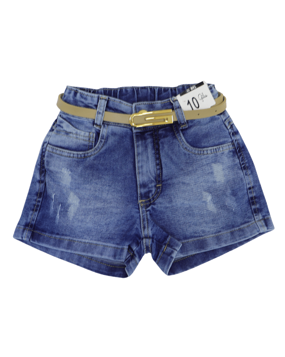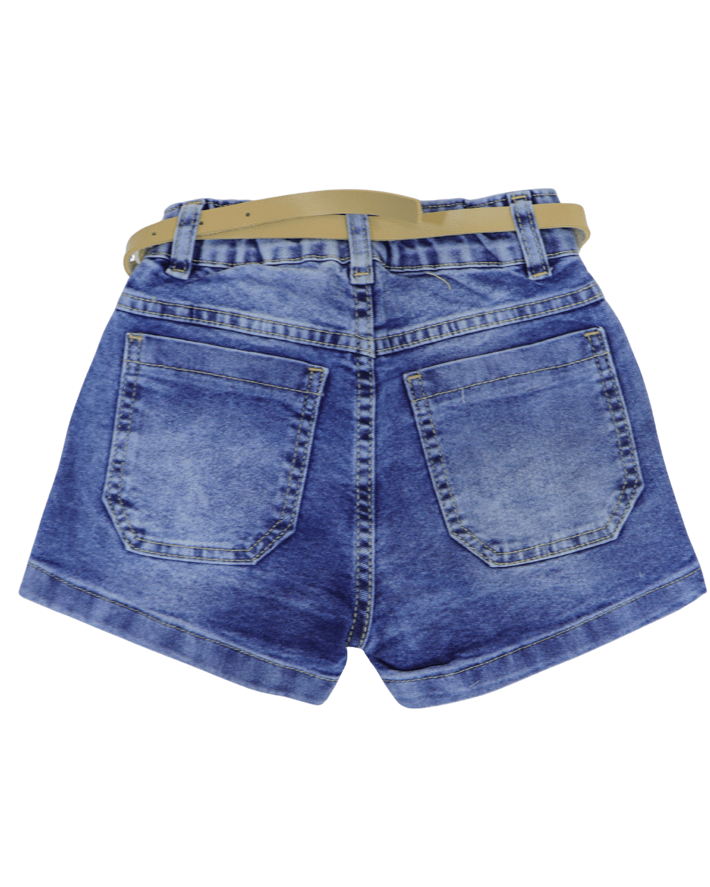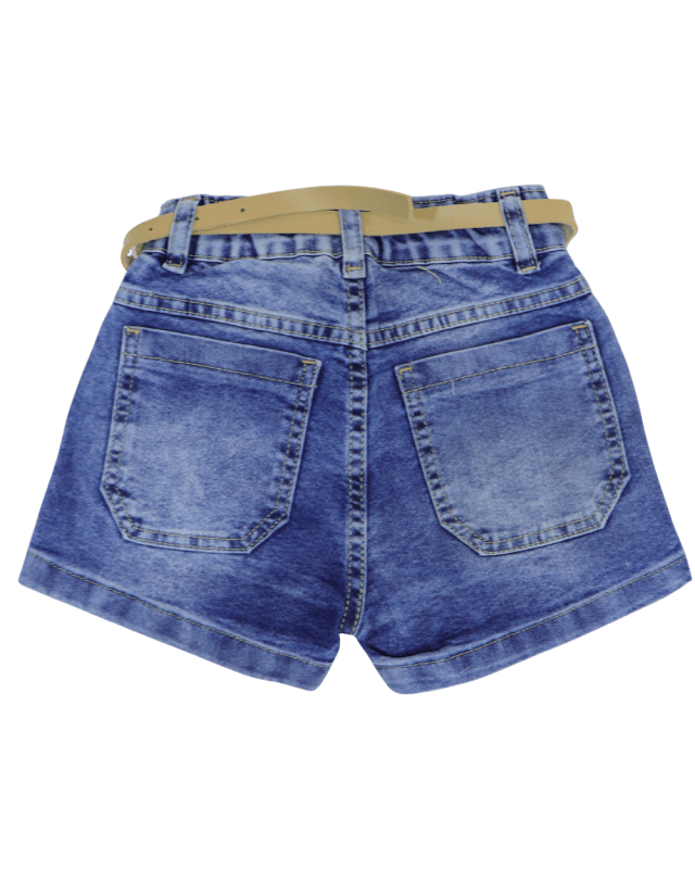 Shorts infantil feminino Jeans Gilas, modelo com barra simples, detalhes desfiados bem discreto só pra fazer uma graça mesmo e ccintura elástica o modelo acompanha o cinto.