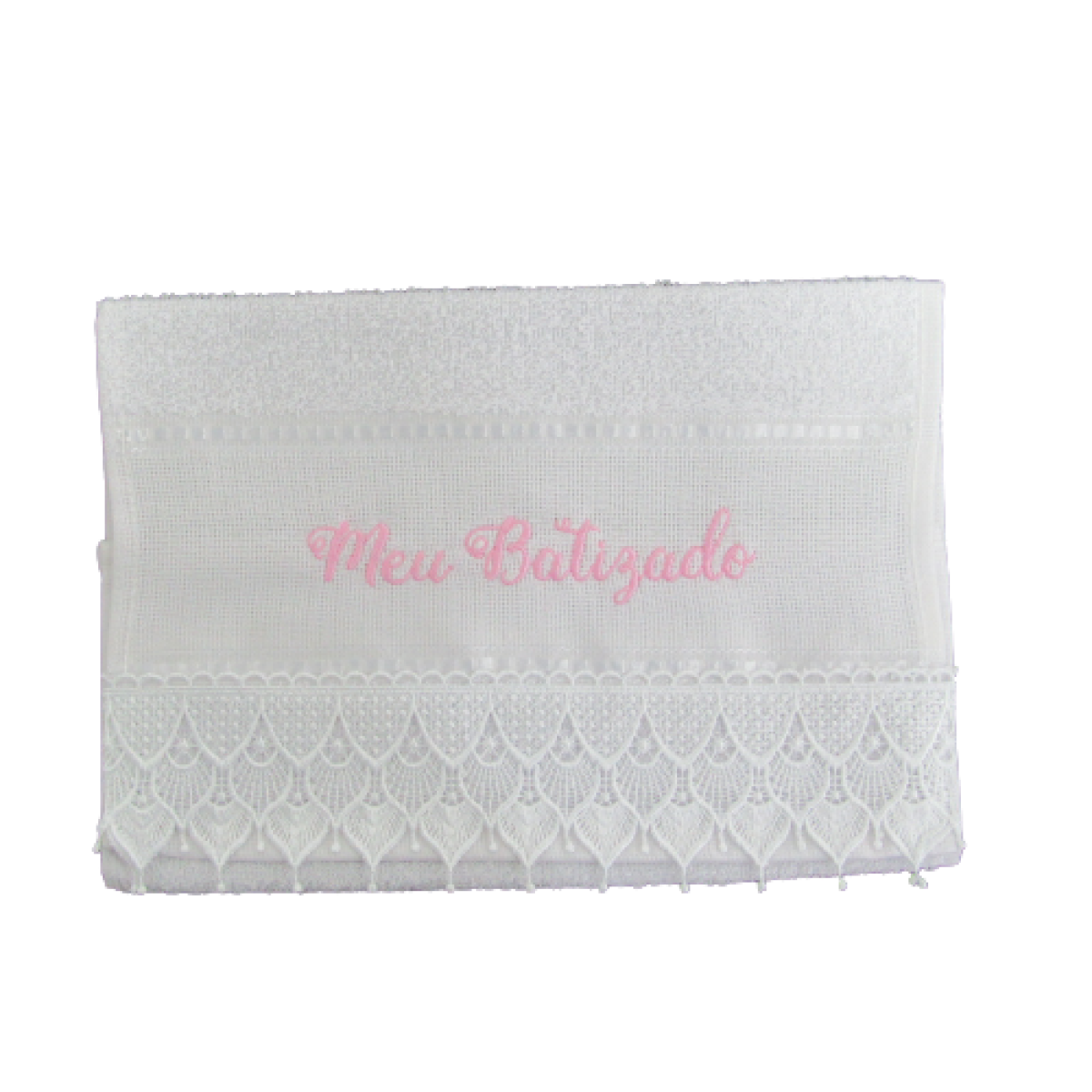 TOALHA BATIZADO , BORDADA E COM RENDA GRIPIR.