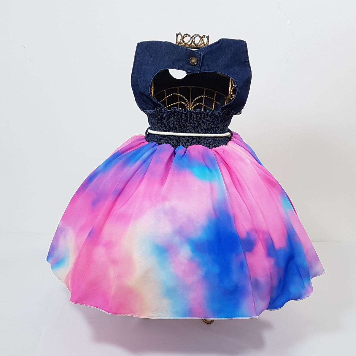 VESTIDO REGATA, PEITO JEANS, SAIA ESTAMPA TIE DAY ,CINTO DE CORDÃO.ELÁSTICO NAS COSTAS AJUSTÁVEL AO CORPO.DISPONÍVEL NA COR: ROSA ACOMPANHA MÁSCARA