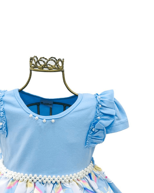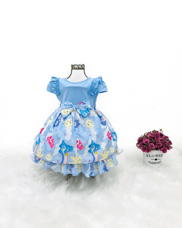 Vestido Caracoles, modelo manga curta, peito em malha super confortavel e com lindos detalhes em pérolas, saia em estampa (ursinhos carinhosos)