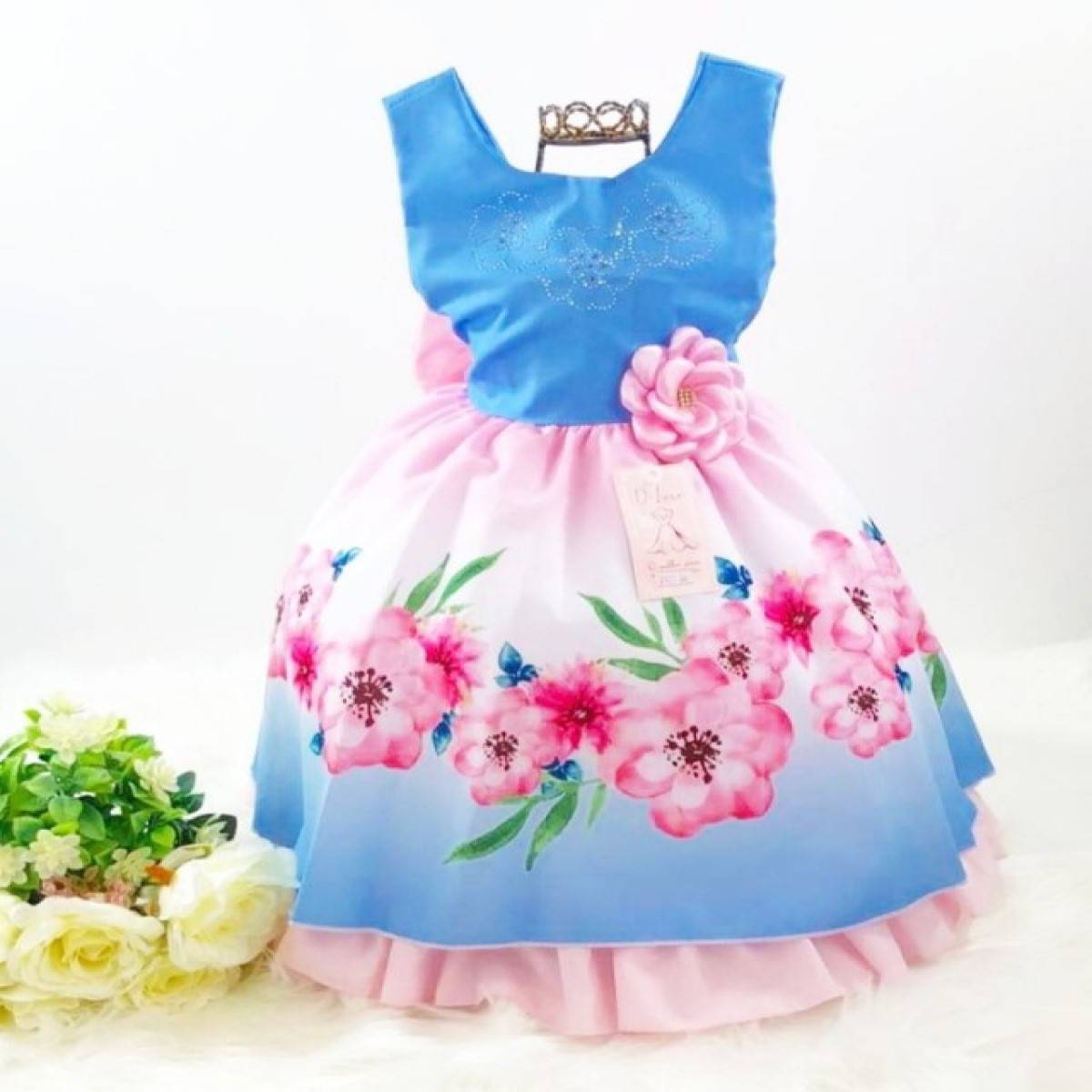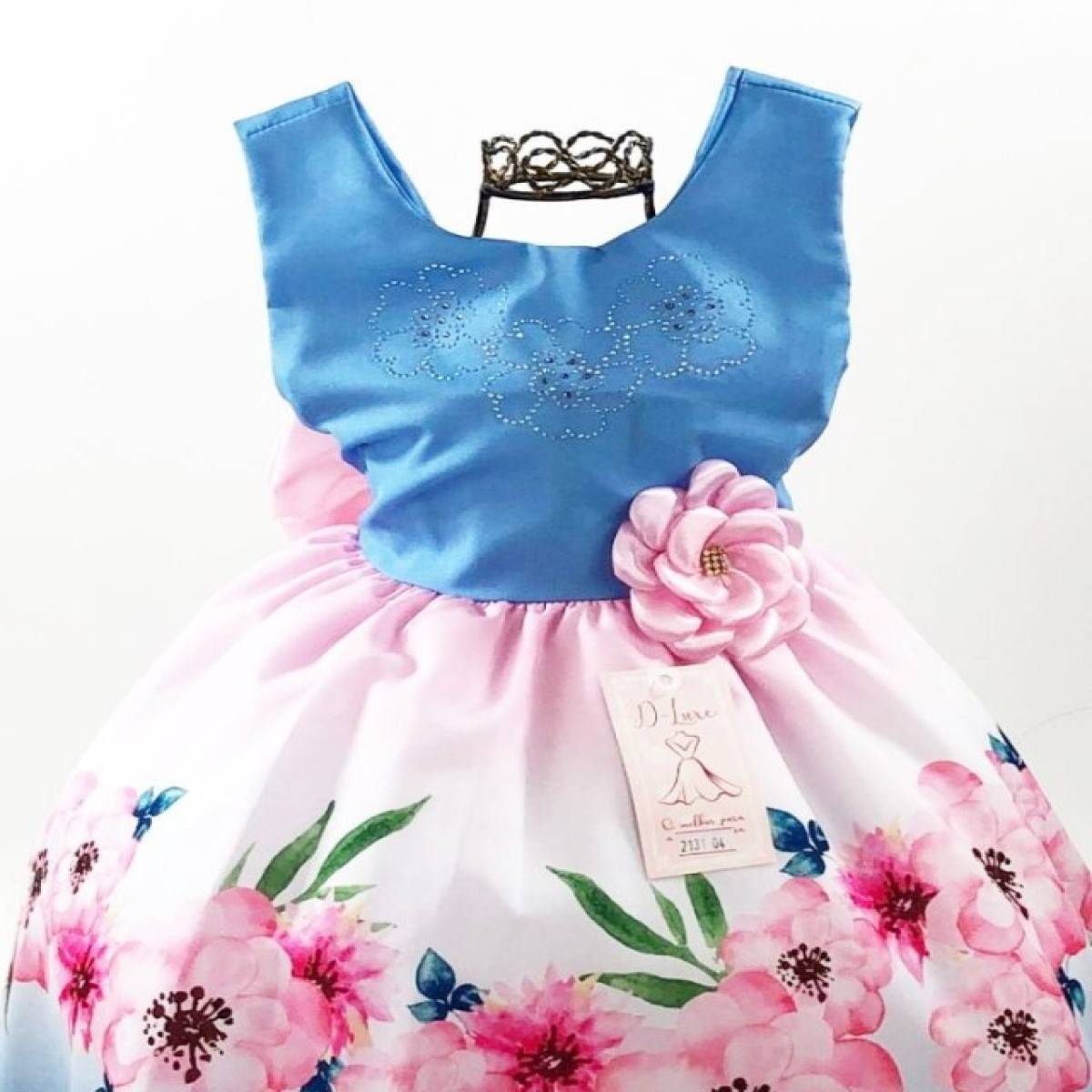 VESTIDO REGATA PEITO COM STRASS , ESTAMPA FLORAL,LAÇO TRASEIRO,ELÁSTICO NAS COSTAS AJUSTÁVEL AO CORPO.