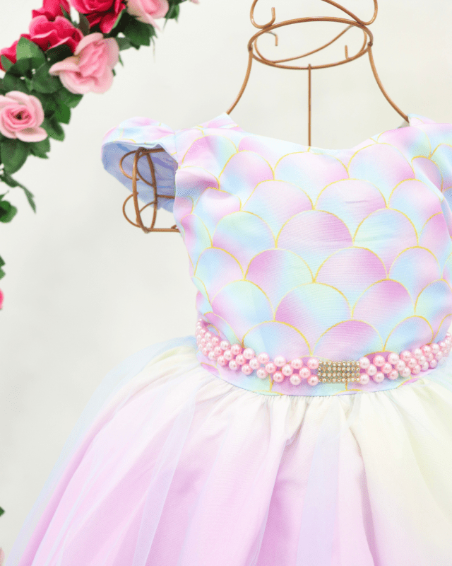 Vestido infantil manga curta liso, cores tie day . Cintura com pérolas sintéticas, saia acabamento simples com uma cama de tule , detalhe nas costas transparente, elástico nas costas ajustável ao corpo e laço.