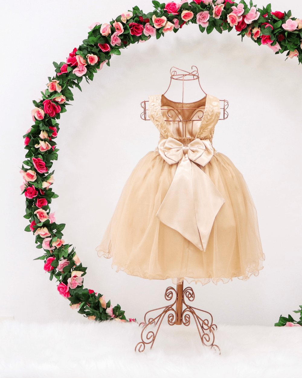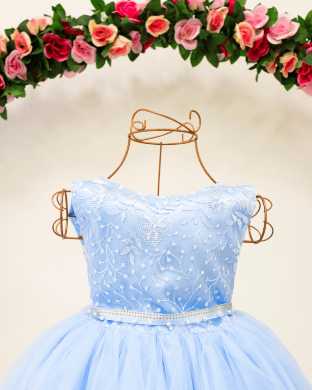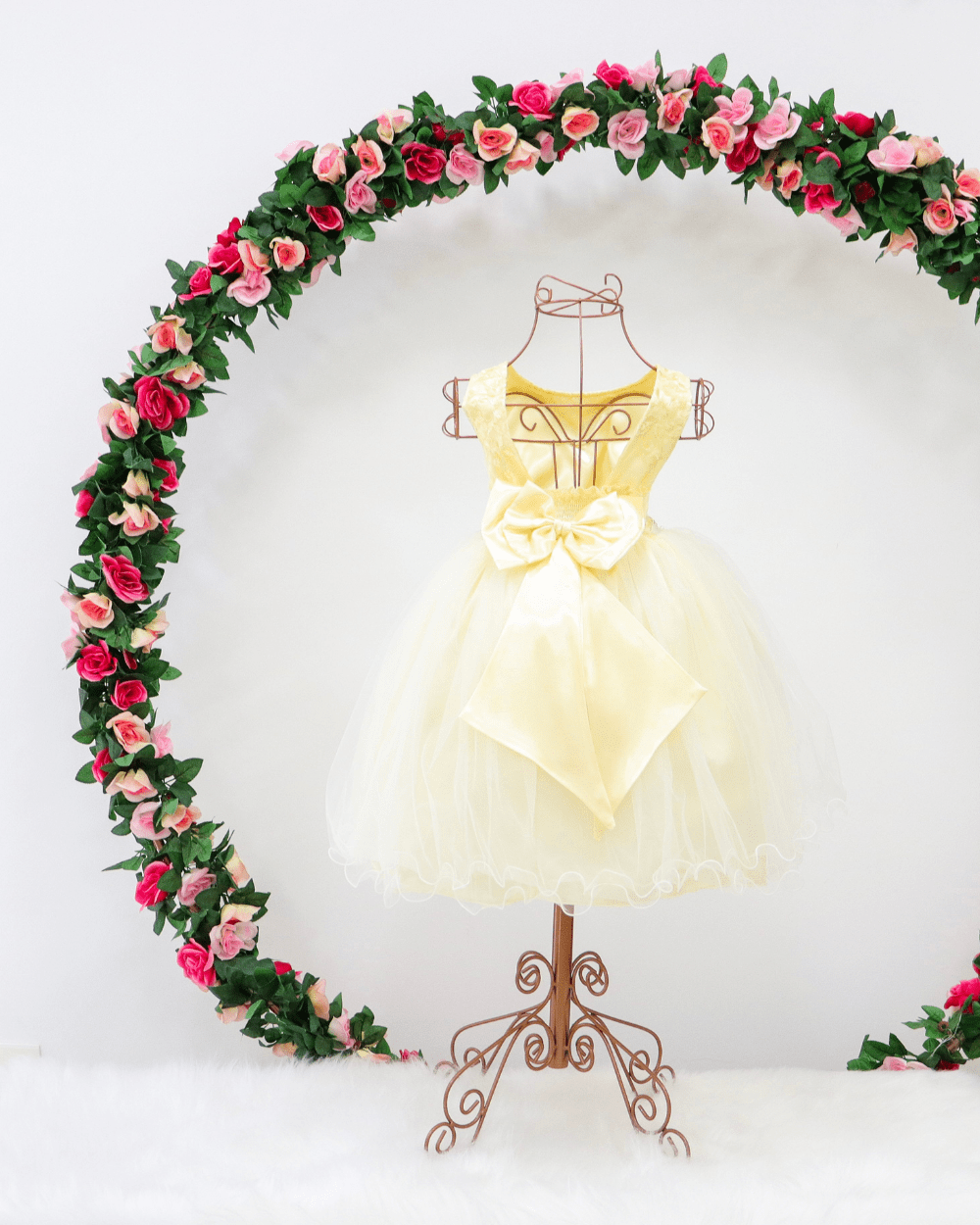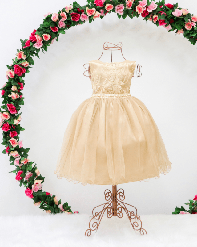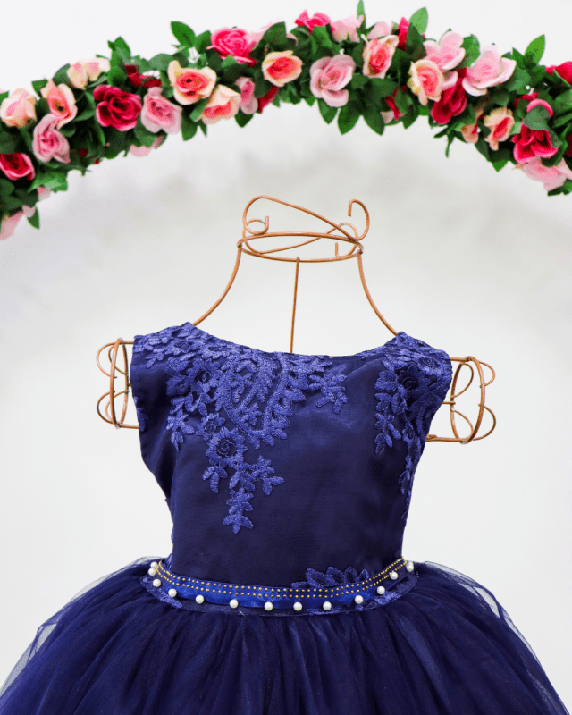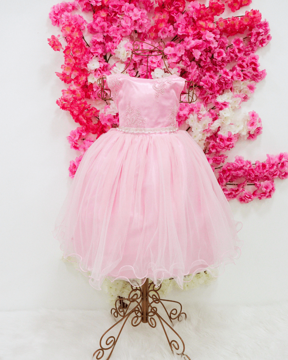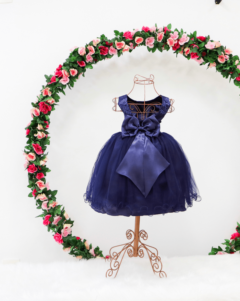Vestido infantil regata peito renda (sortida de acordo com a disponibilidade em estoque). Saia tule voal. Cintura com faixa com aplicação de strass e pérolas sintéticas. Elástico nas costas ajustável ao corpo e laço.