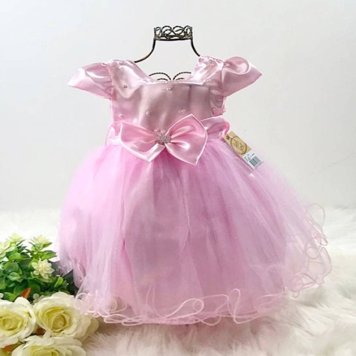 Vestido infantil festa manga curta , peito cetim com aplicações de pérolas sintéticas, sem estampas. Saia lisa tule , elástico nas costas ajustável ao corpo e faixa.