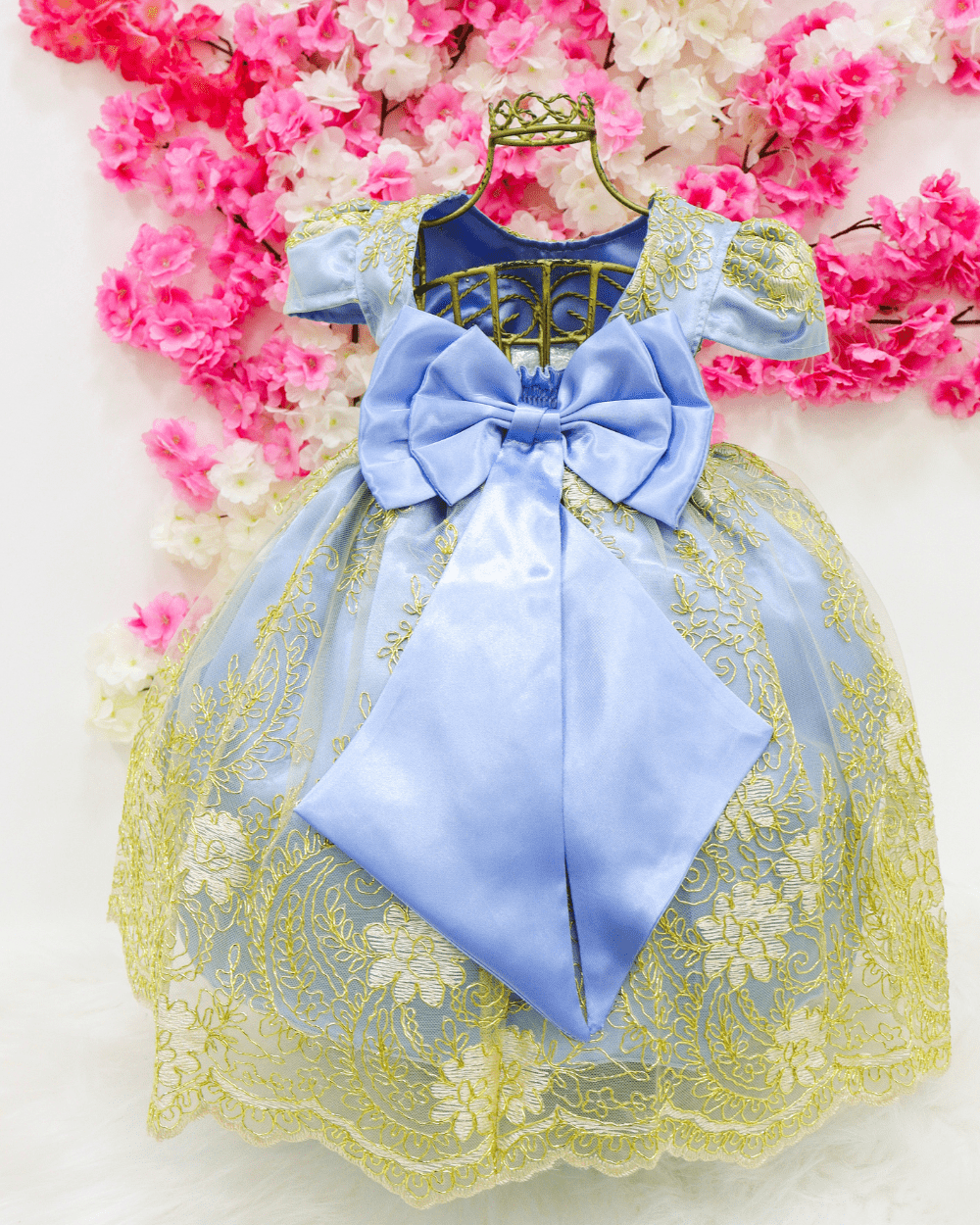 VESTIDO INFANTIL FESTA ENJOY KIDS TAM.:1/3 REF.:2246 OFF COM DOURADO