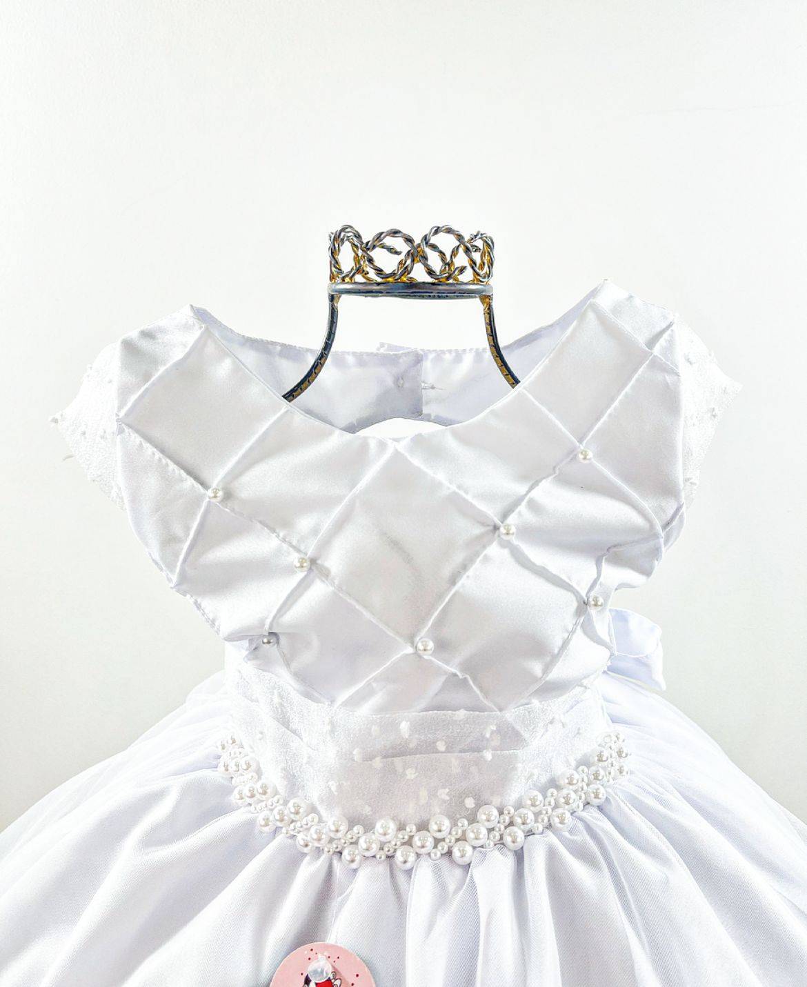 Vestido manga curta infantil manguinha transparente bolinhas , peito nervura. Cintura bordada pérolas sintéticas, saia lisa com camada de tule. Elástico nas costas ajustável ao corpo e faixa para ajuste.
