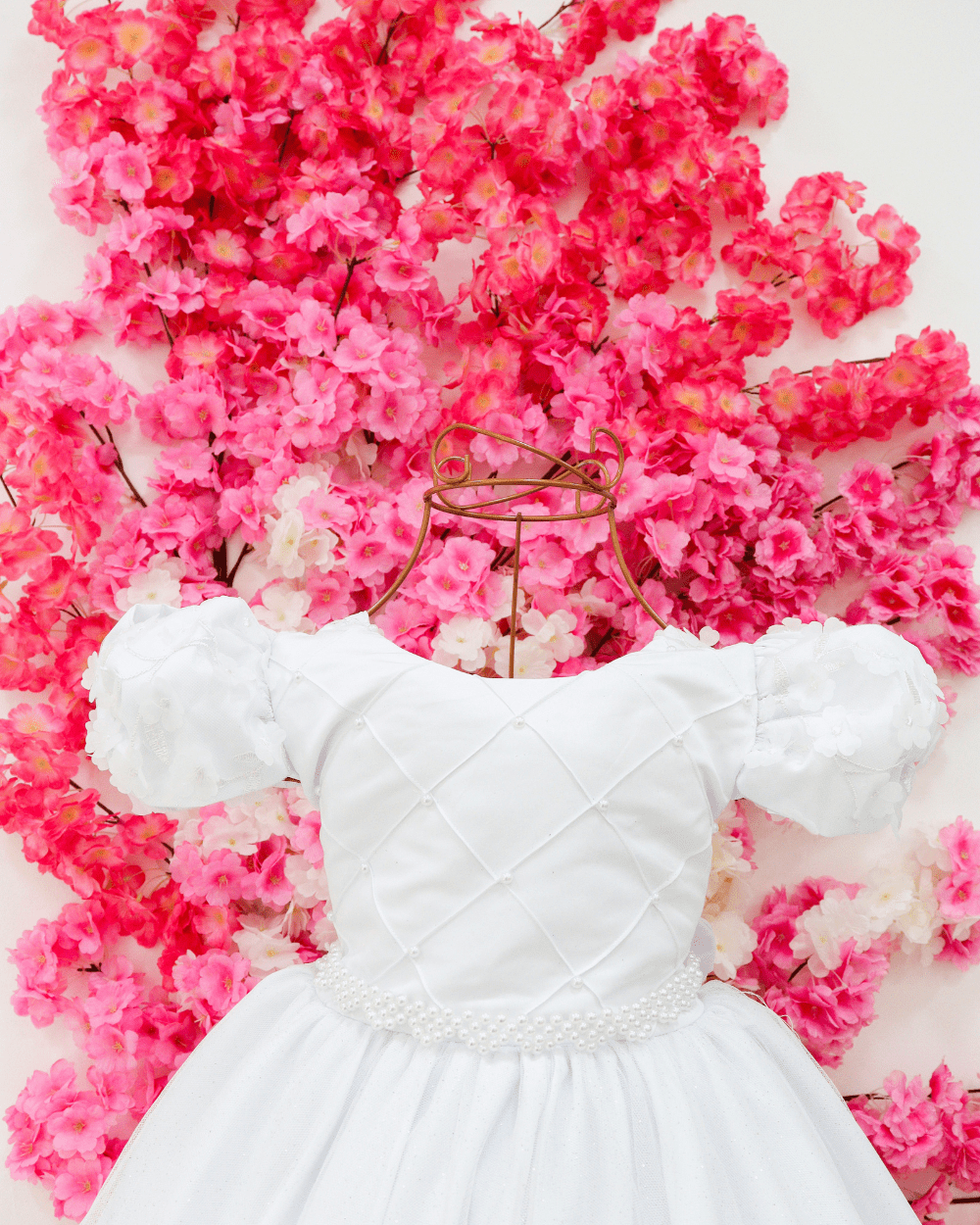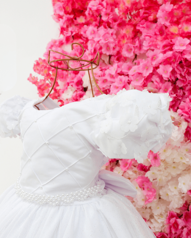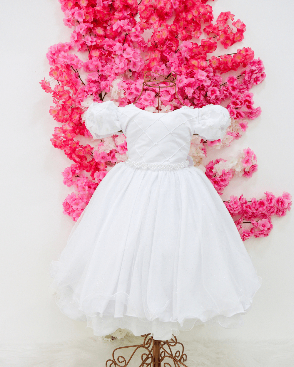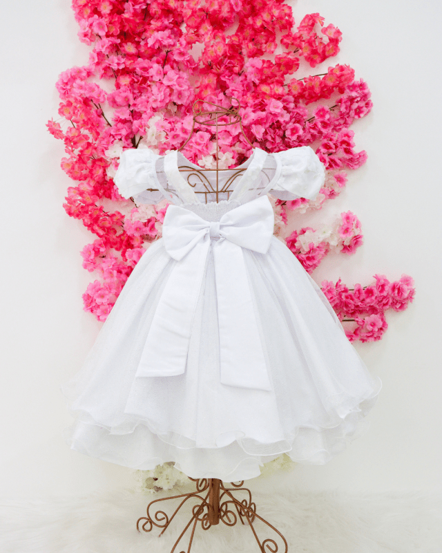 Vestido caracoles, manga curta , super delicado saia em tule, laços na cintura e costa elástica para melhor ajuste ao corpo.