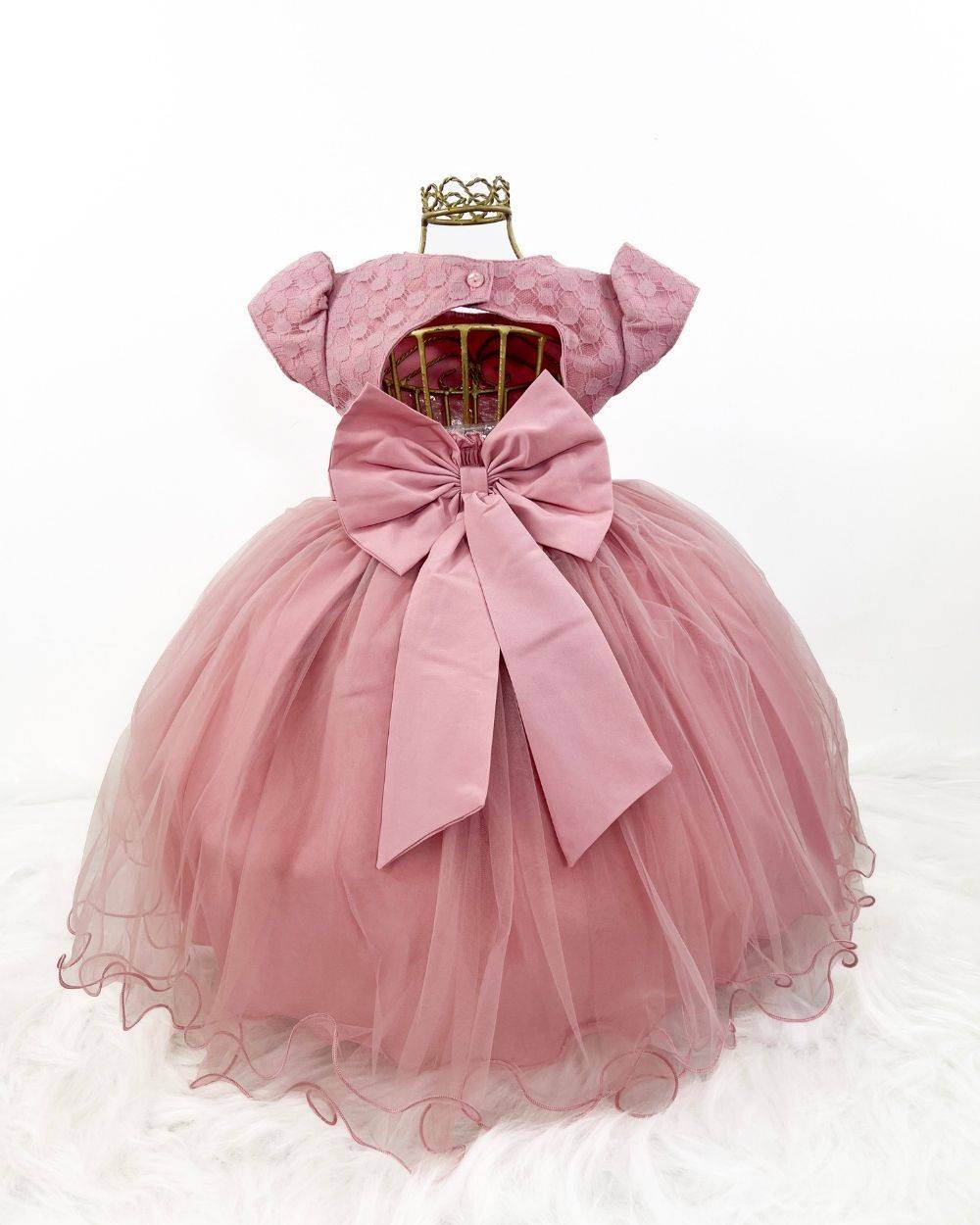 Composição: Vestido: 100% Poliéster. Saia/Babados/Tules: 100% Poliamida. Saiote/Forro da saia: 100% Algodão.