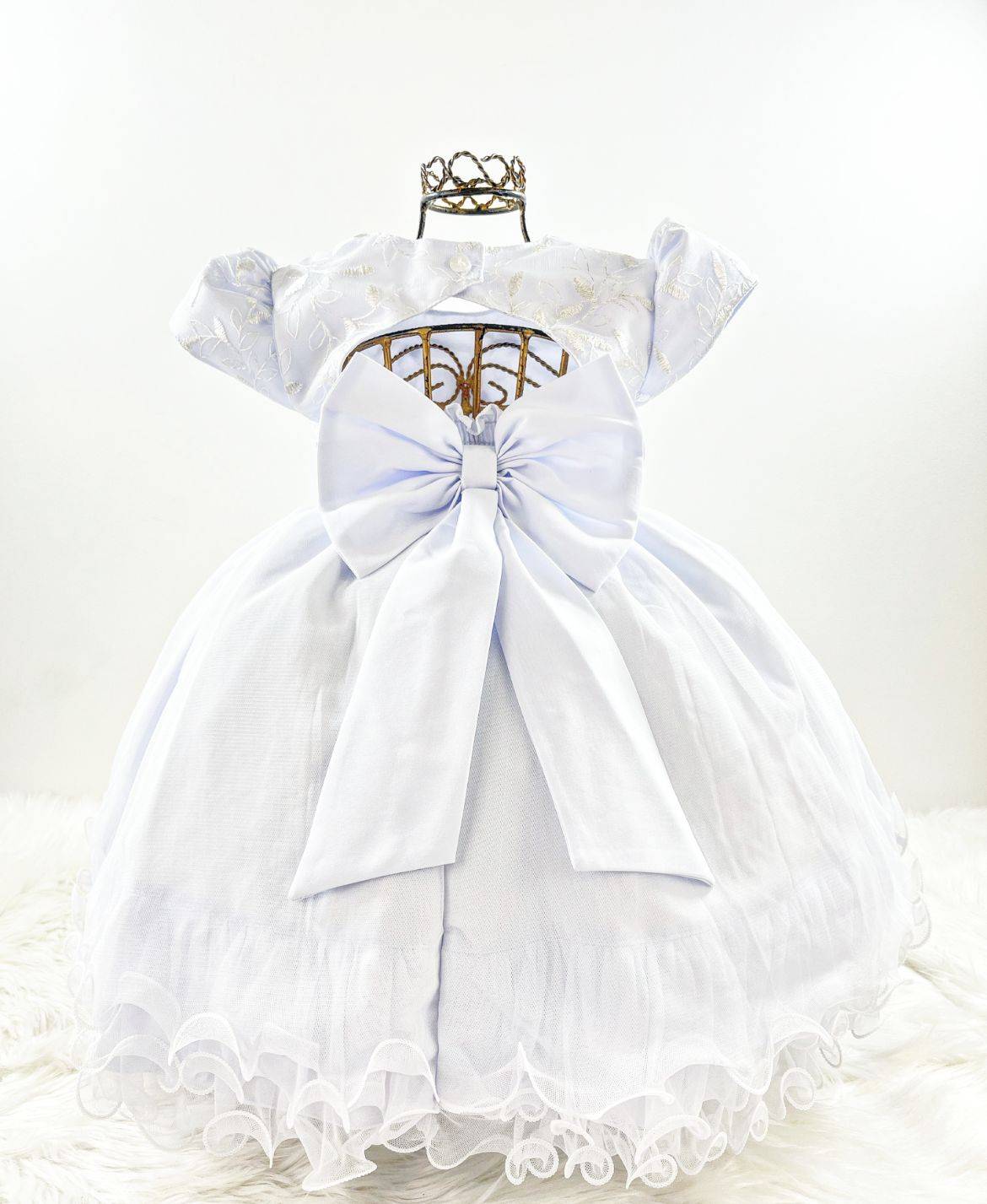 Vestido infantil manga curta, peito rendado e aplique de borboletas com pérolas sintética, saia lisa voal tule. Cintura com passante para cintinho de pérolas sintéticas . Elástico nas costas ajustável ao corpo e laço broche.