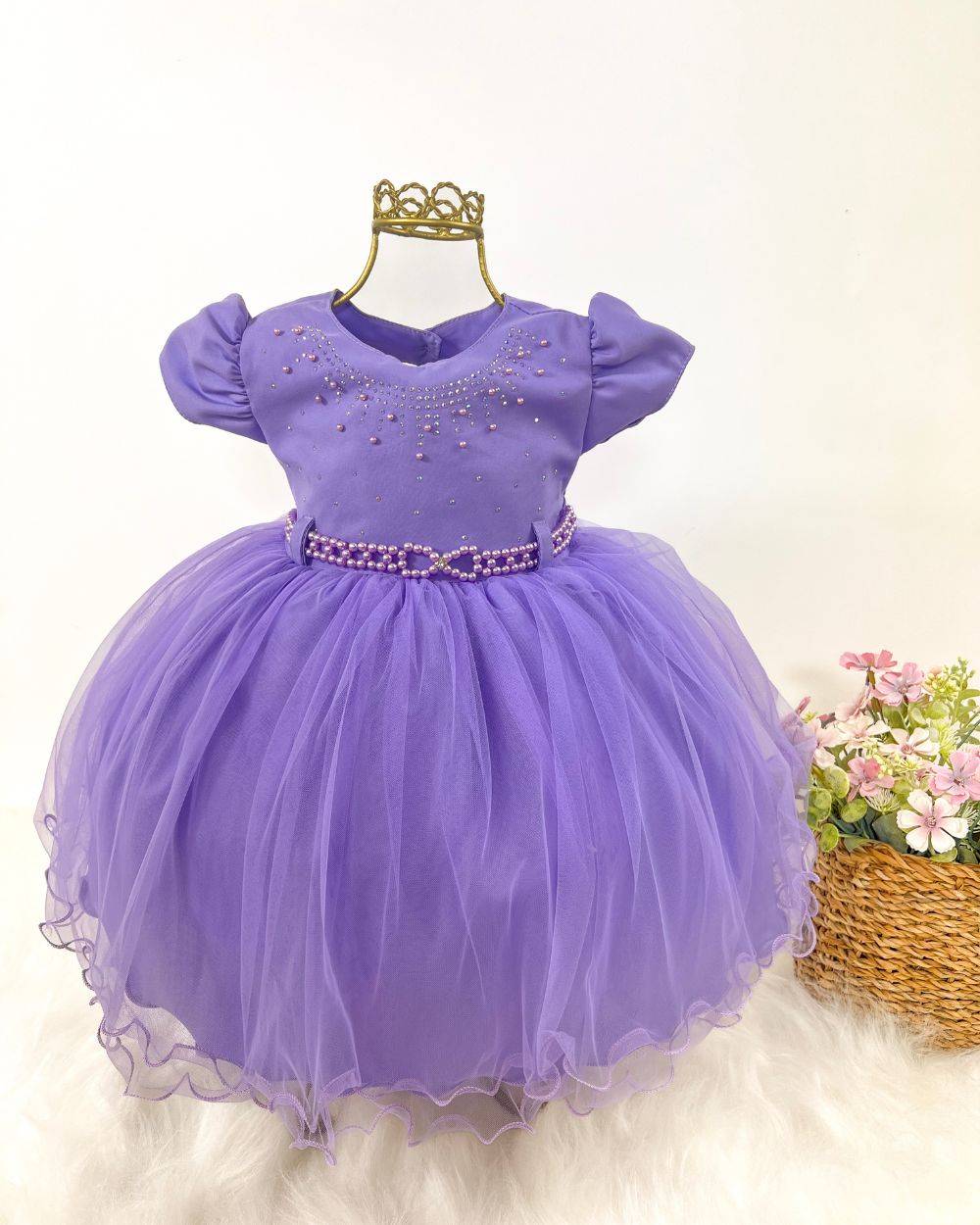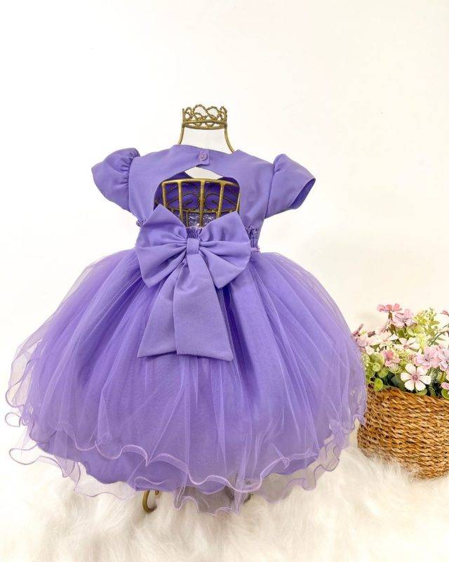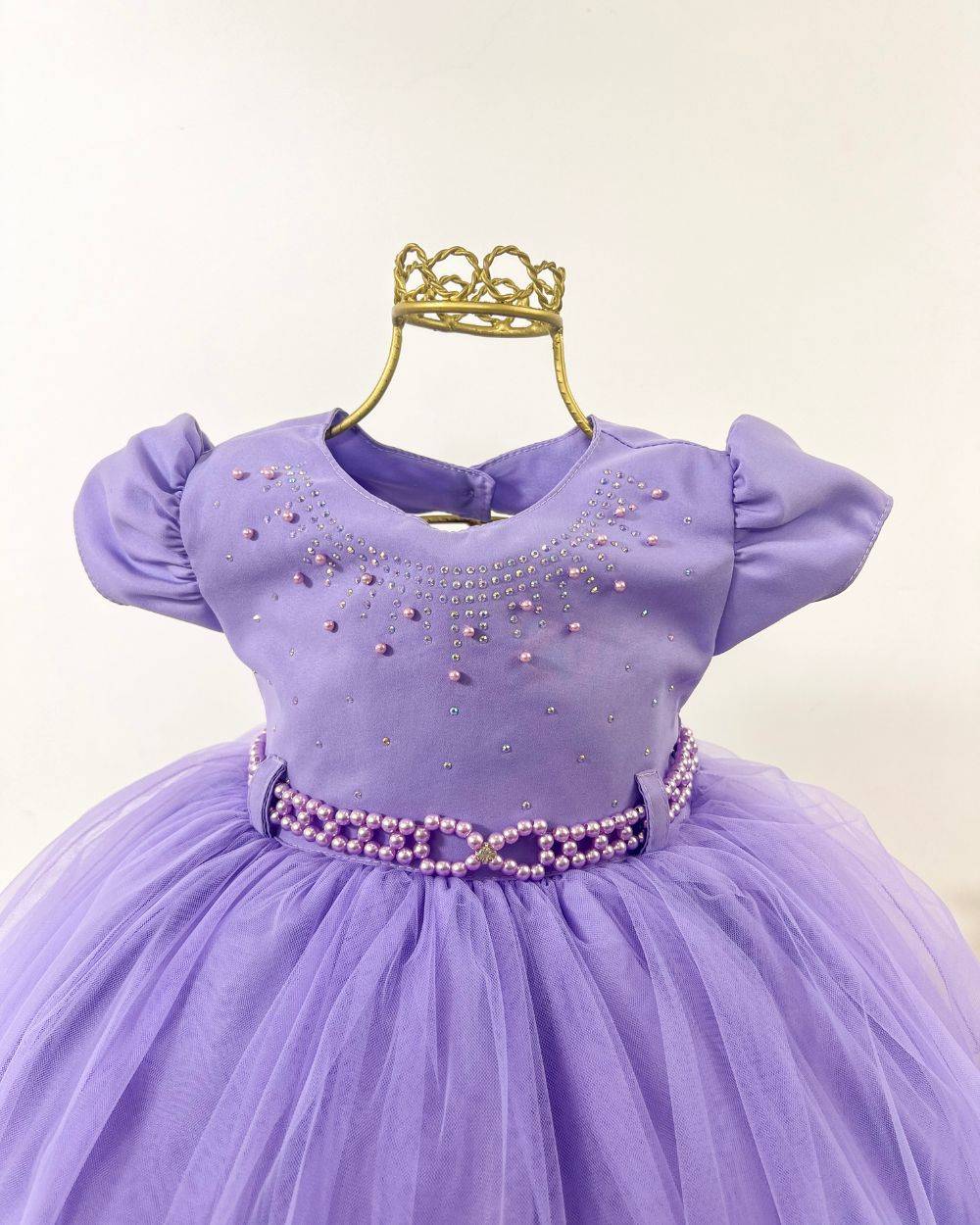 Vestido, menina bonita, manga curta, em sua cintura tem passante acompanhado de um lindo cinto trabalhado em perola, costas semi fechada e laço removível.