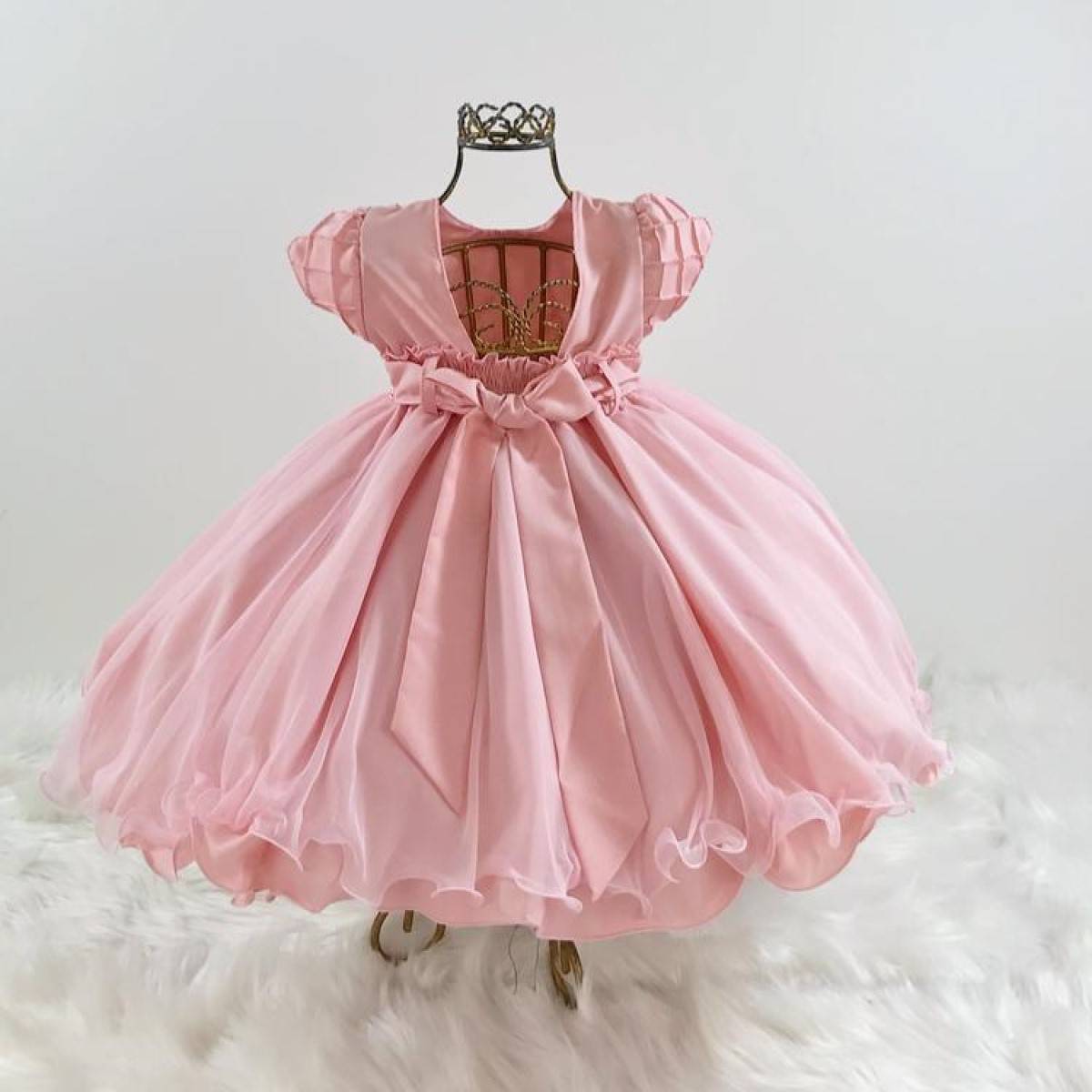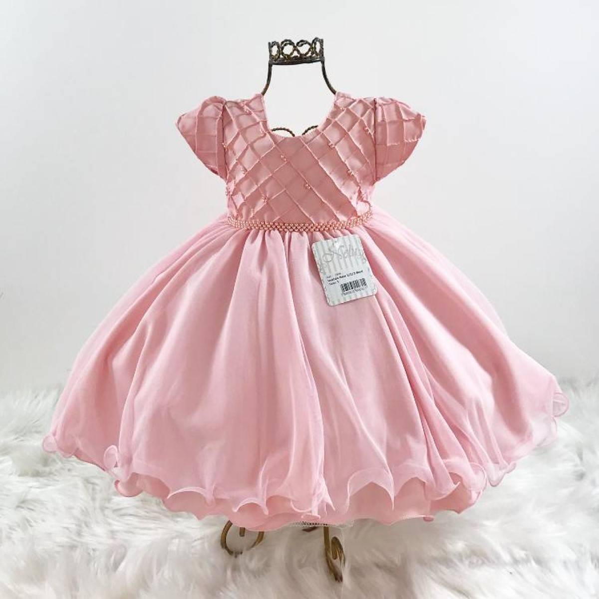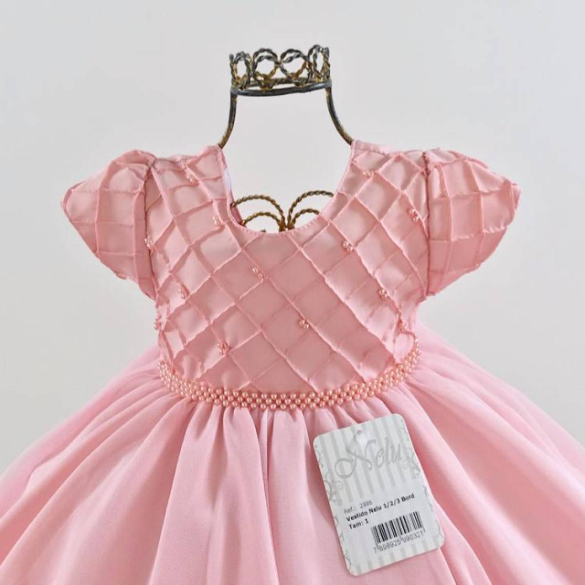 Vestido infantil manga curta , peito bordado quadriculado e pérolas sintéticas ,liso, cintura bordada com pérolas sintéticas. Elástico nas costas ajustável ao corpo e faixa para melhor ajuste.
