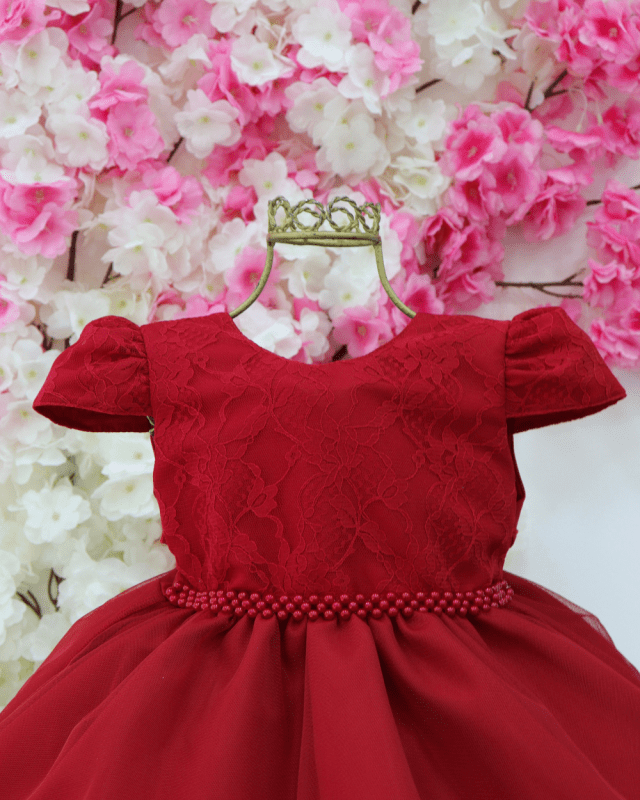 Vestido infantil Nina Girls, modelo manga curta, detalhes em seu peito em pérolas, saia em tule.