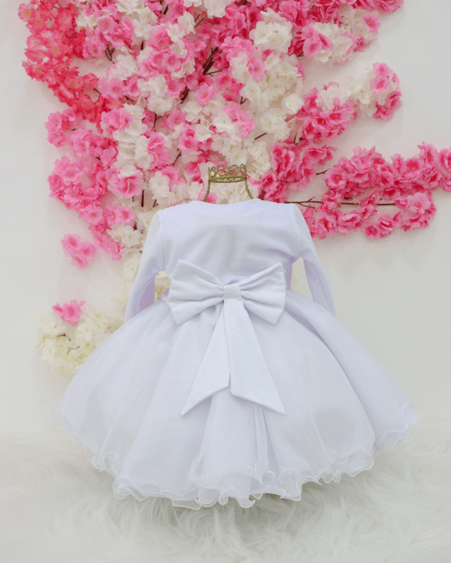 Vestido Nelu, vestido regata com com bolero, peito rendado, saia de em tule costas semi aberta e laço removível.