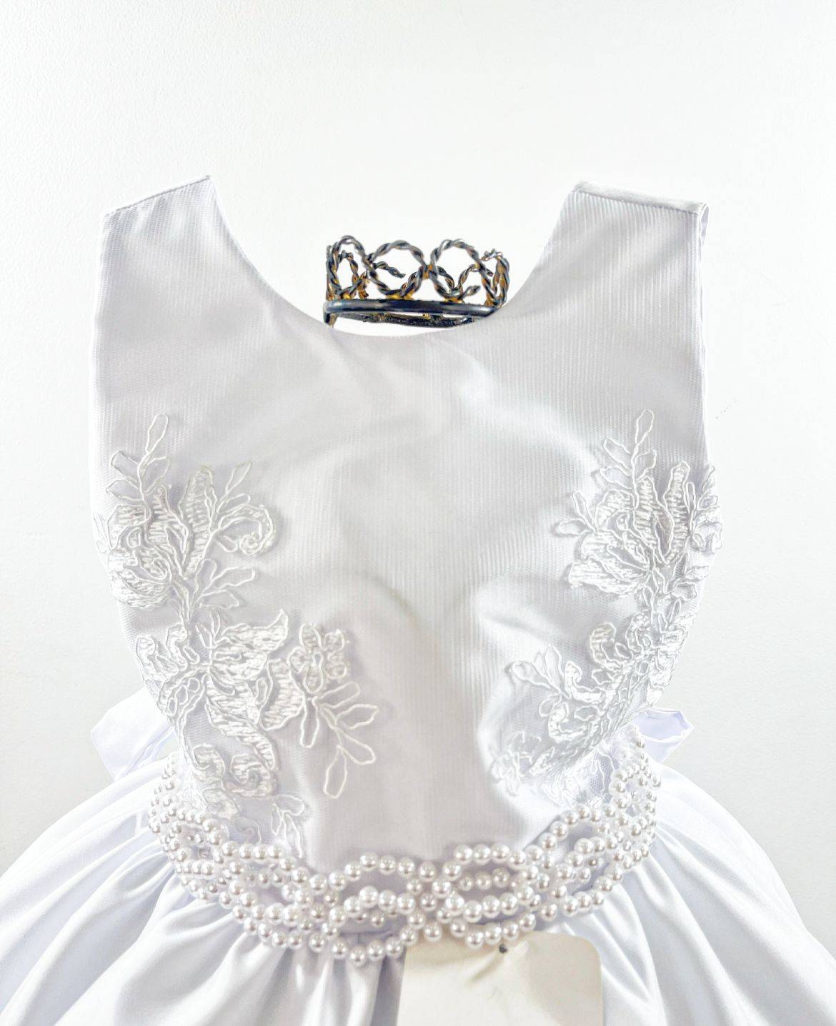 VESTIDO REGATA,PEITO COM RENDA,CINTO DE PÉROLAS, ELÁSTICO NAS COSTAS AJUSTÁVEL AO CORPO- DISPONÍVEL NA COR: BRANCO