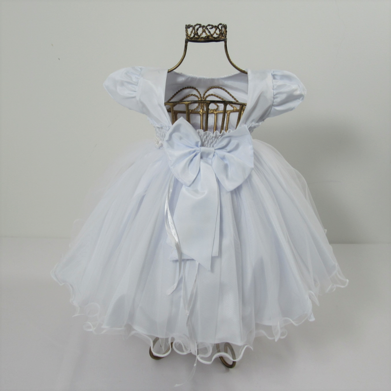 VESTIDO MANGA CURTA ,PEITO COM RENDA,CINTO DE PÉROLAS SINTÉTICAS ,SAIA TULE ,ELÁSTICO NAS COSTAS AJUSTÁVEL AO CORPO, LAÇO TRASEIRO- COR:BRANCO
